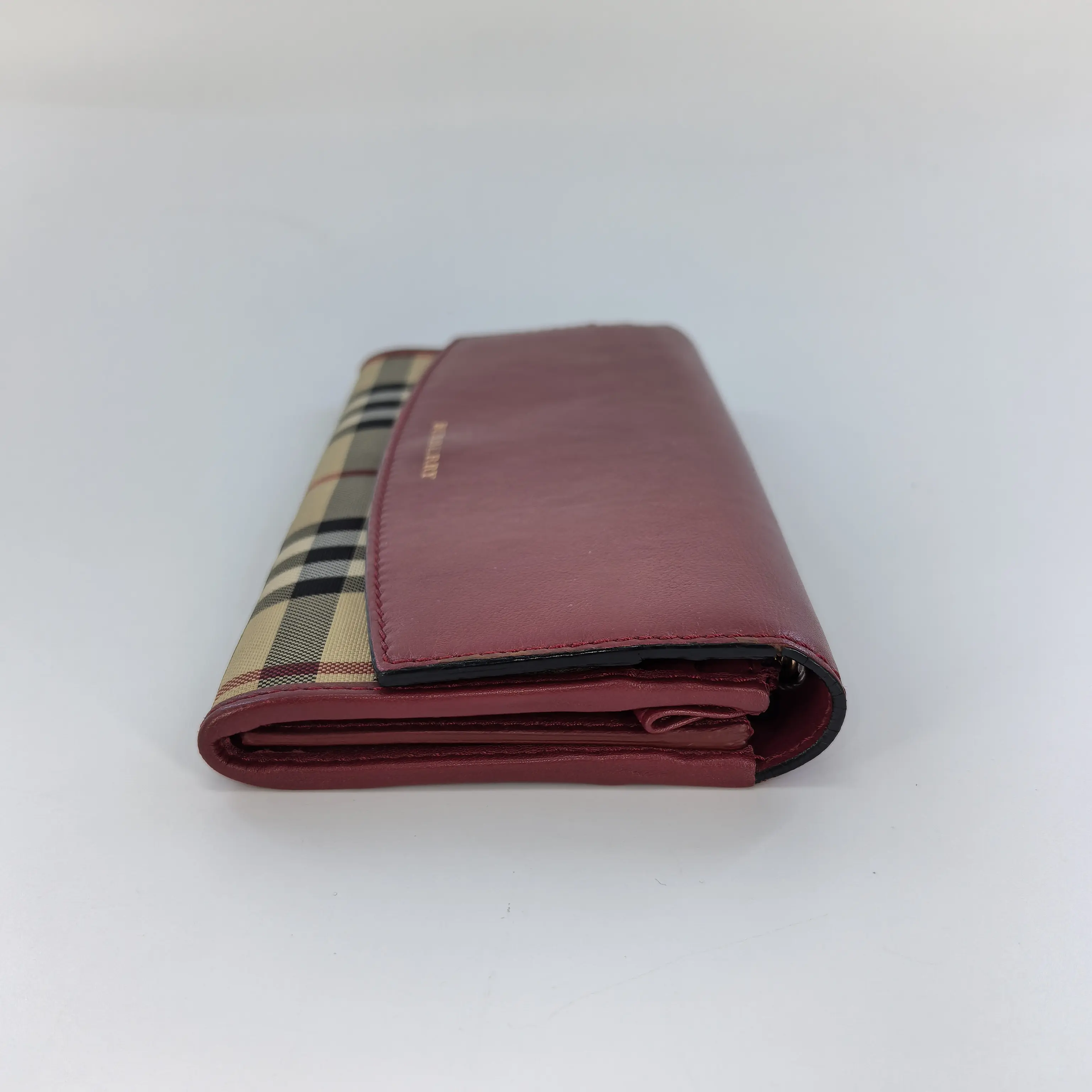 Pre-owned BURBERRY Canvas Small Leather Goods Calfskin Horseferry Check Porter Continental Wallet Red J0014