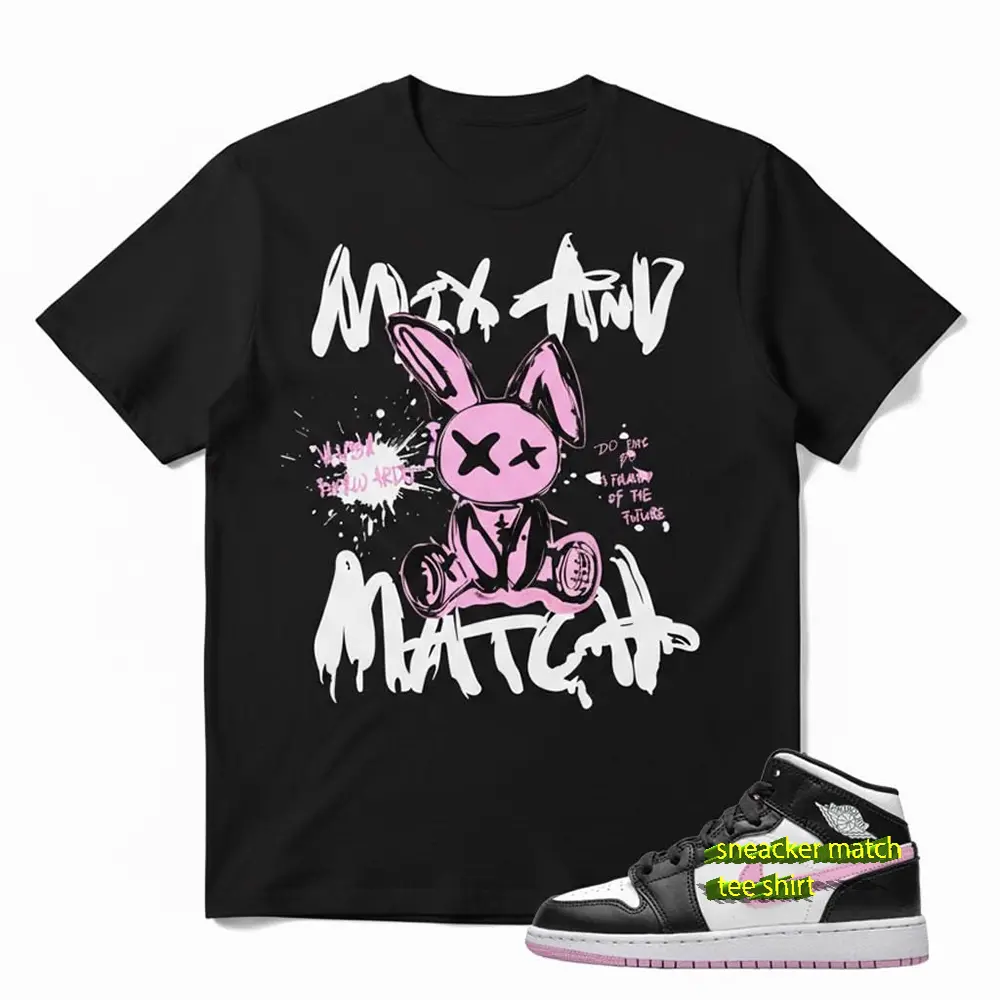 ·Street-Ready Graphic: Featuring an edgy, hand-drawn style bunny with a bold "Mix And Match" script. It’s the ultimate statement piece for any urban wardrobe.