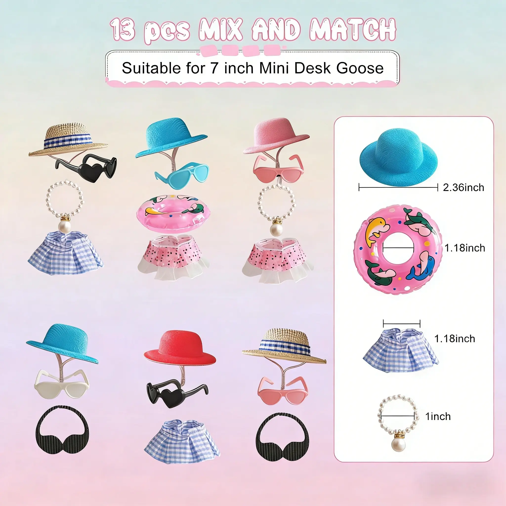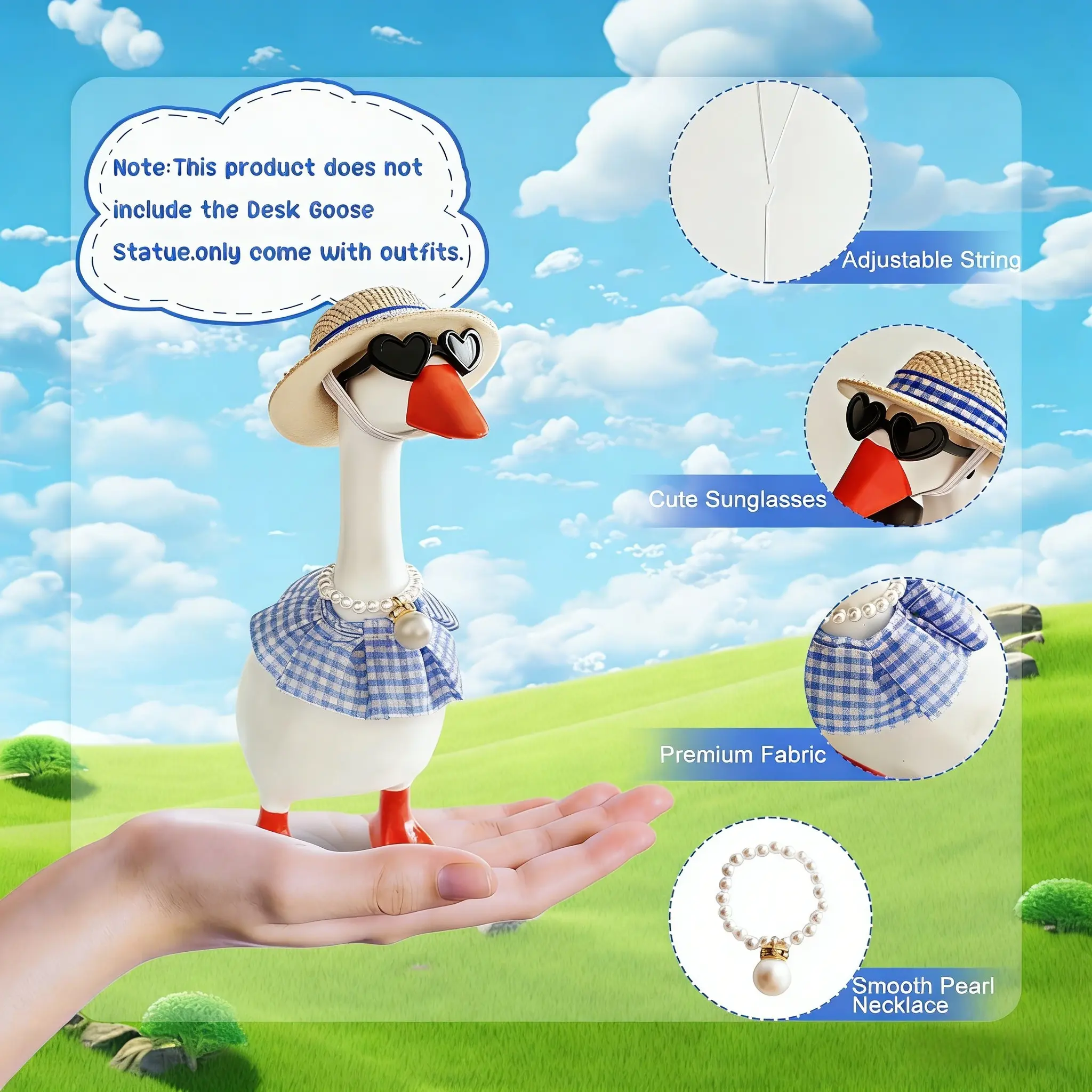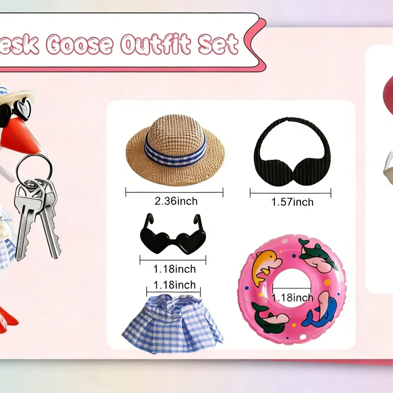 Reliable Materials: Crafted with care, the sunglasses are made of durable PP, swim rings from quality PVC, mini hats from soft felt, and the bikinis from premium fabric that's comfortable and lightweight. Excellent craftsmanship ensures each piece looks charming and fits your desk goose perfectly—bringing both style and dependability.