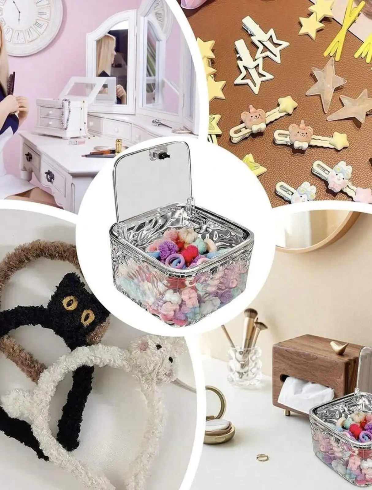 Keep your small items neat and visible with this clear acrylic storage box. The flip-top lid protects contents from dust while allowing easy access. Perfect for hair accessories, jewelry, and daily essentials.