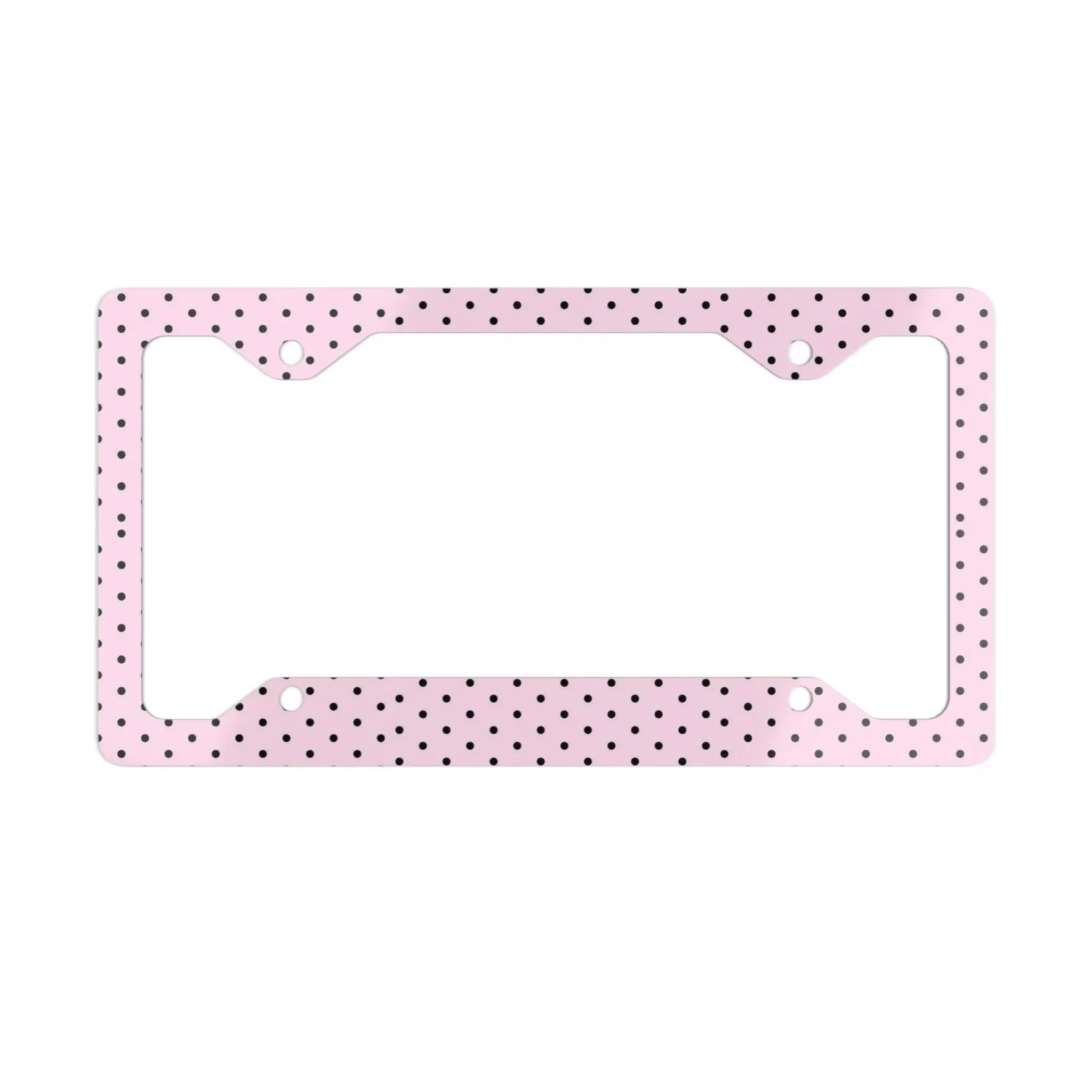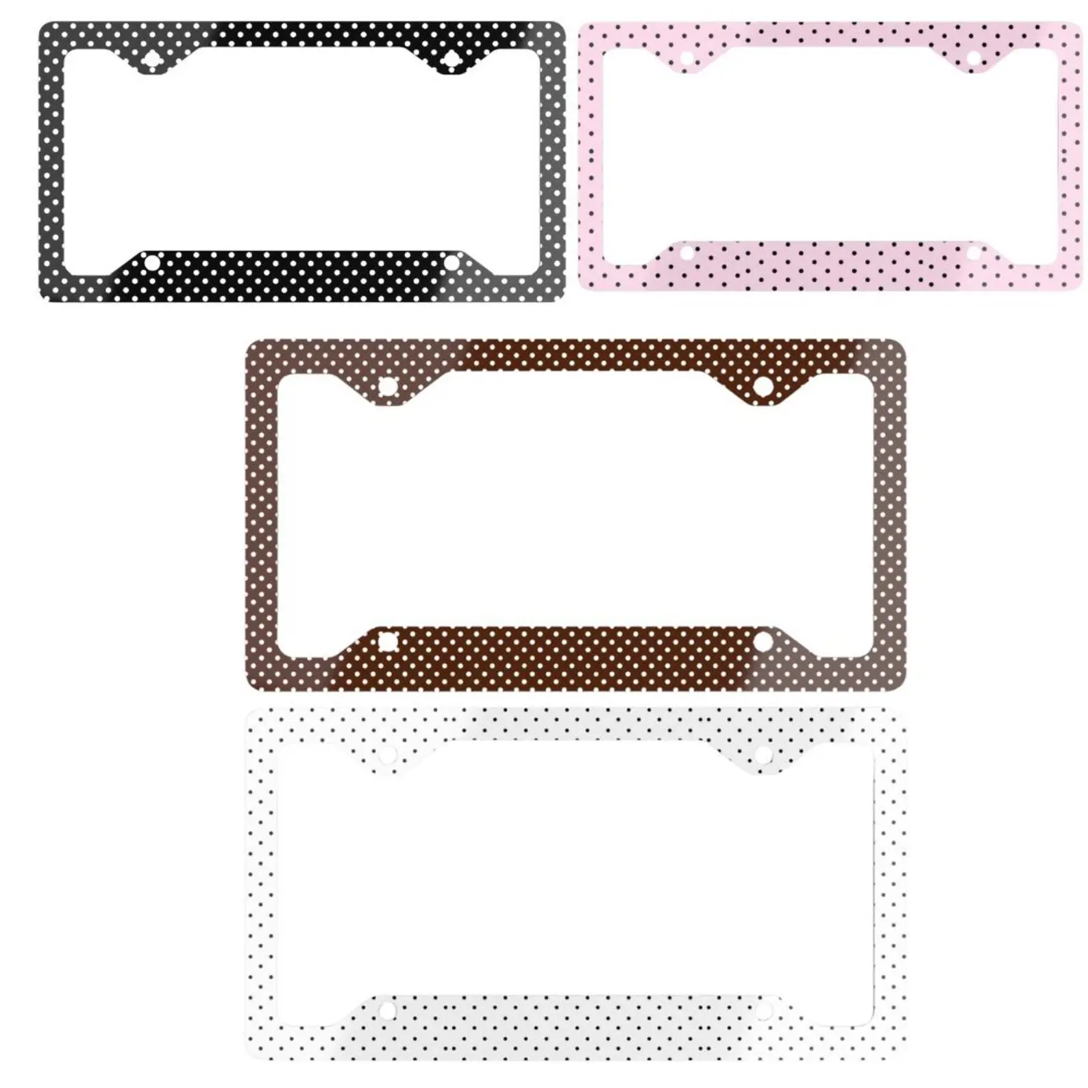 Polka Dot License Plate Frame Set, Cute Aesthetic Car Tag Holder, Black Pink Brown White 12.3x6.5_ Aluminum Frame for Women & Girls