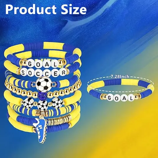 Handmade-style clay bead bracelets with sporty vibes, matching the latest friendship bracelet trend on TikTok.