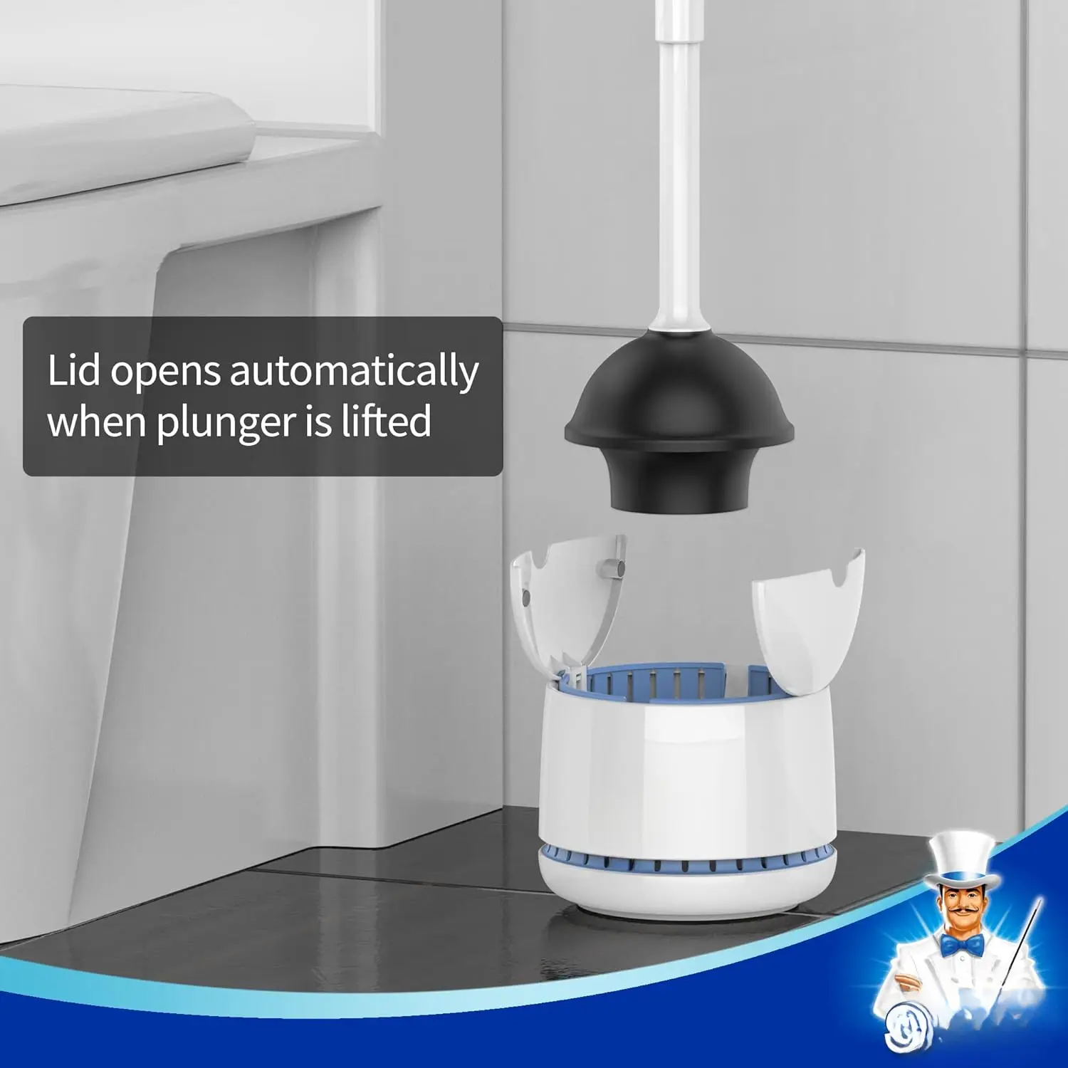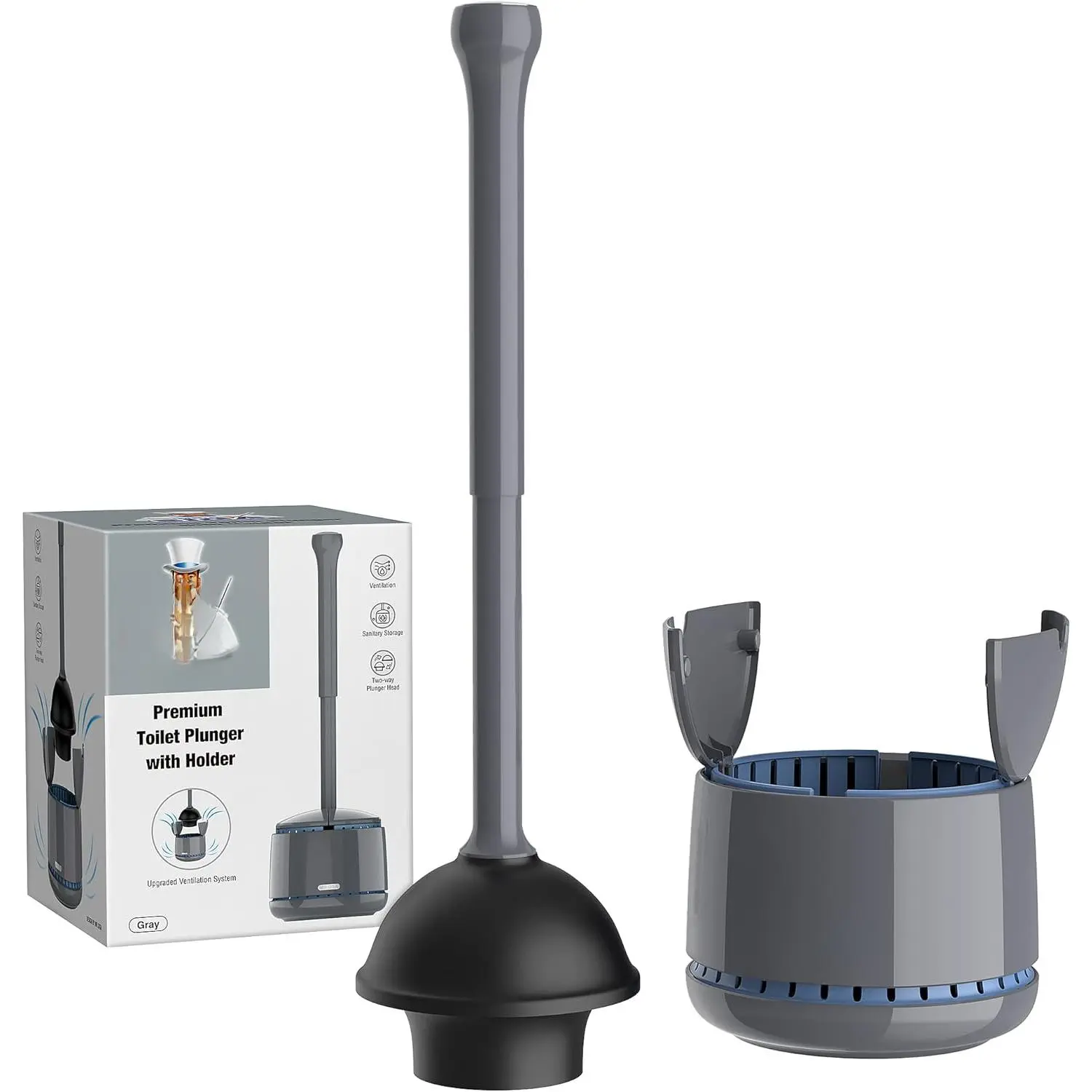 Toilet Plunger with Holder, Heavy Duty Toilet Plunger and Holder Combo for Bathroom Cleaning, White