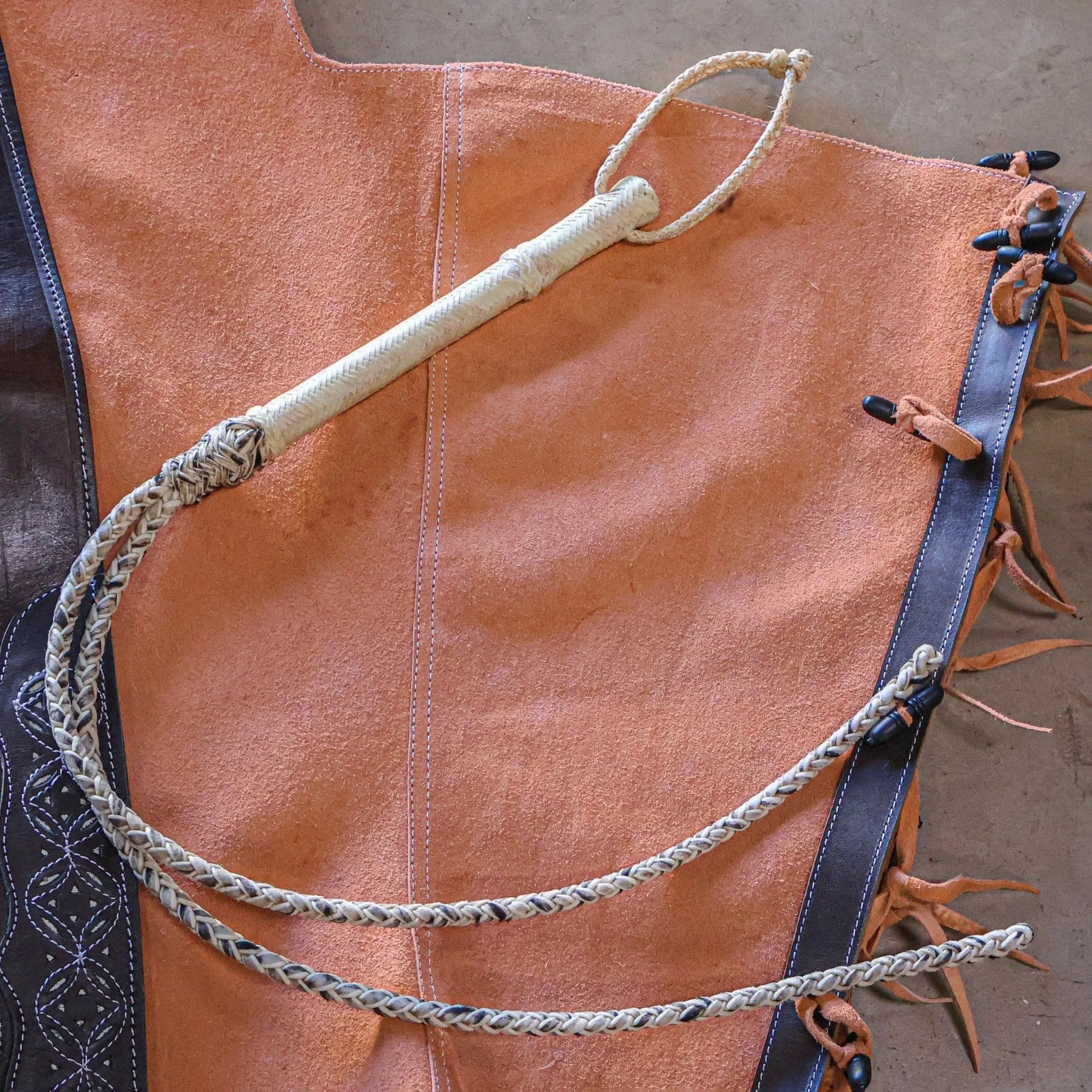 All-braided Charro rawhide quirt, crafted from durable rawhide with a traditional style braid pattern. Strong, flexible, and built for everyday use.