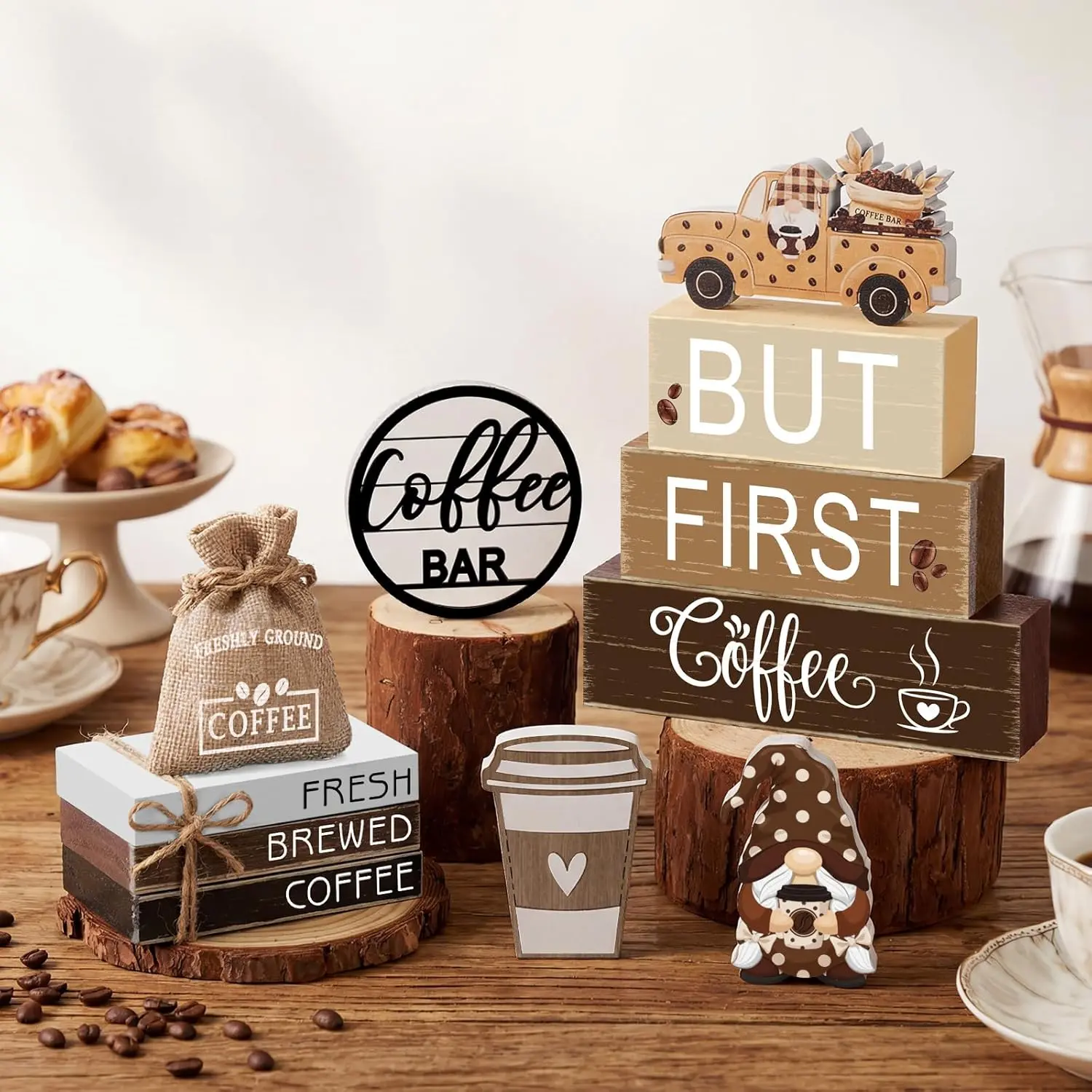 11 Pcs Coffee Bars Table Decorations Coffee Tiered Tray Decor Farmhouse Table Centerpiece Wooden Books Home Tabletop Decor for Home Kitchen