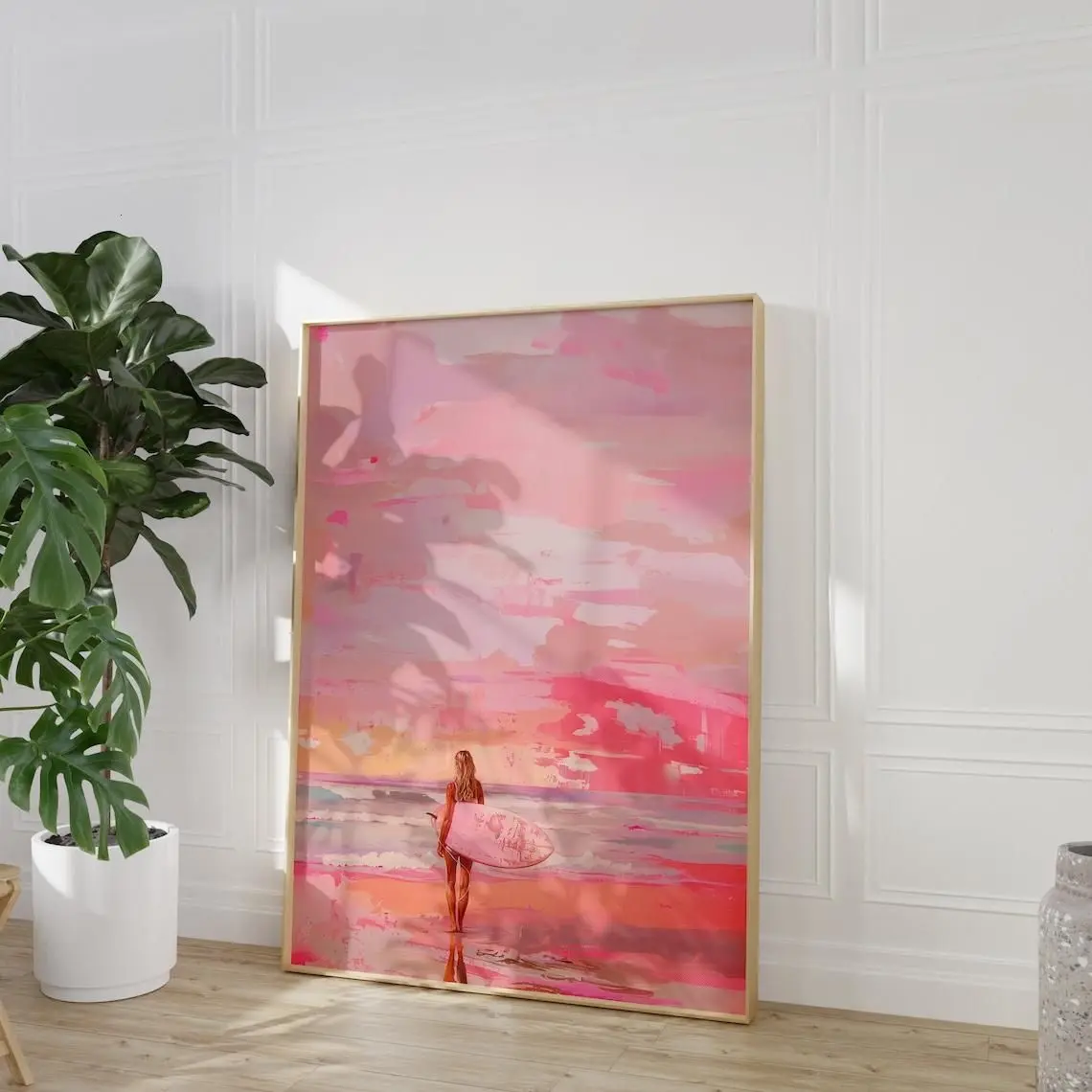 [Sale off up to 65%][Free Ship][No Frame] Coastal Cowgirl Aesthetic, Vintage Beach Poster, Abstract Coastal Beach Painting, Preppy Pink Apartment Decor, Pink Printable Wall Art 2