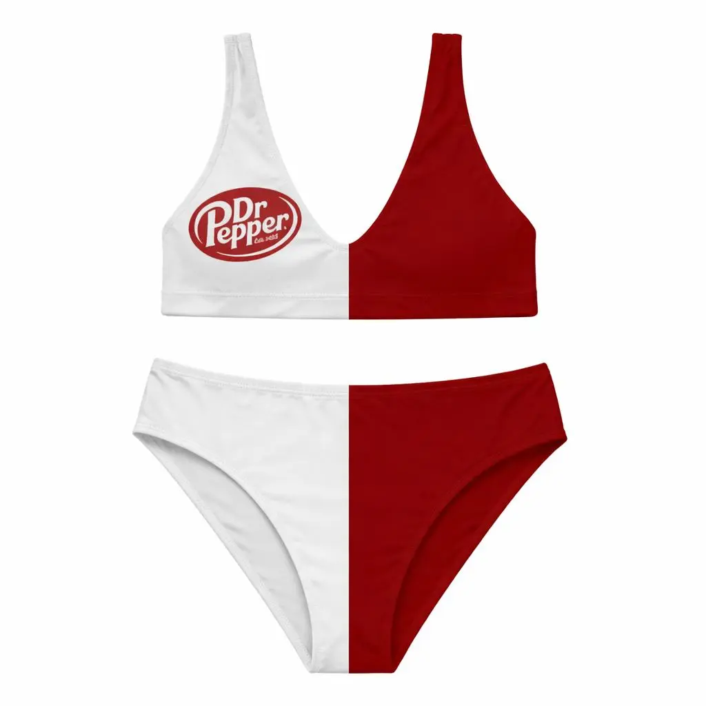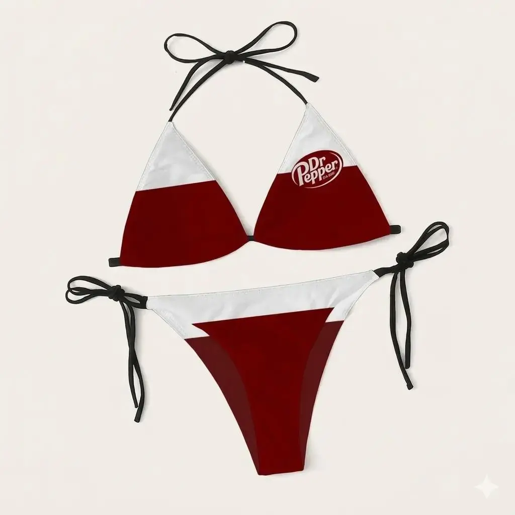Dr Pepper Matching Couple Swimwear, Triangle Bikini Set with Men’s Swim Trunks for Beach and Pool Outfit