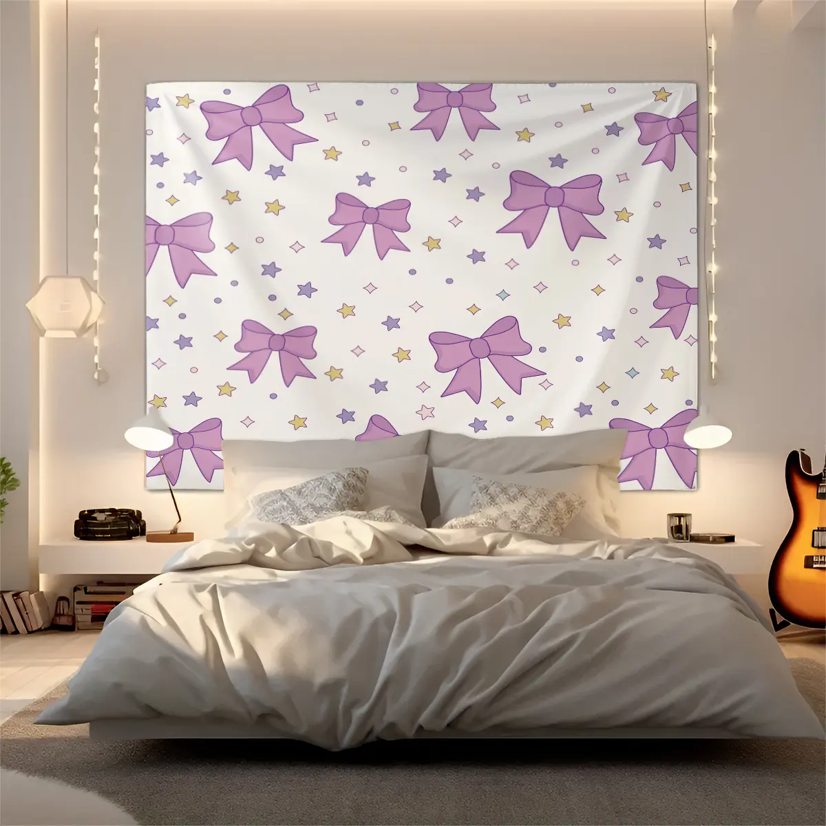 【Aesthetic Appeal】: Enhances the aesthetic appeal of your room with its charming purple bow design.