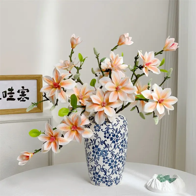 Elevate your space with these luxurious new Chinese magnolia artificial flowers. Featuring a realistic touch and lifelike bloom, they bring a serene Zen aesthetic to any home, hotel, or decorative scene. Crafted with high-quality materials for long-lasting beauty, no maintenance required. Perfect for interior styling, table centerpieces, wall decor, and professional landscape design. A timeless cross-border essential to add elegance and calm to modern and traditional spaces alike.