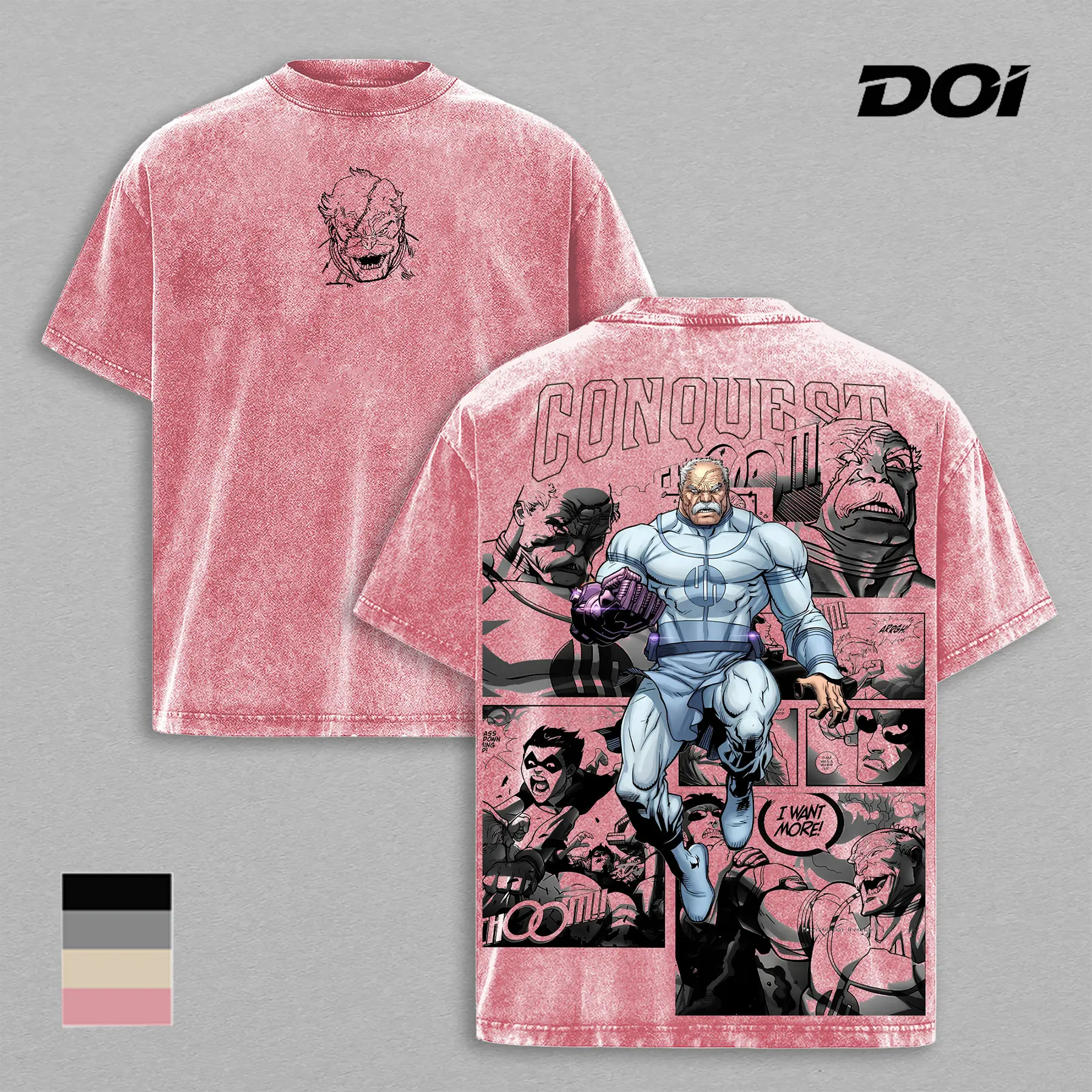 Conquest Invincible Villain Graphic Tee, Vintage Washed Superhero Shirt, Viltrumite Warrior Conquest Design, Comic Panel Collage Print, Unisex Streetwear Heavyweight Cotton Tee, Gift for Invincible Fans