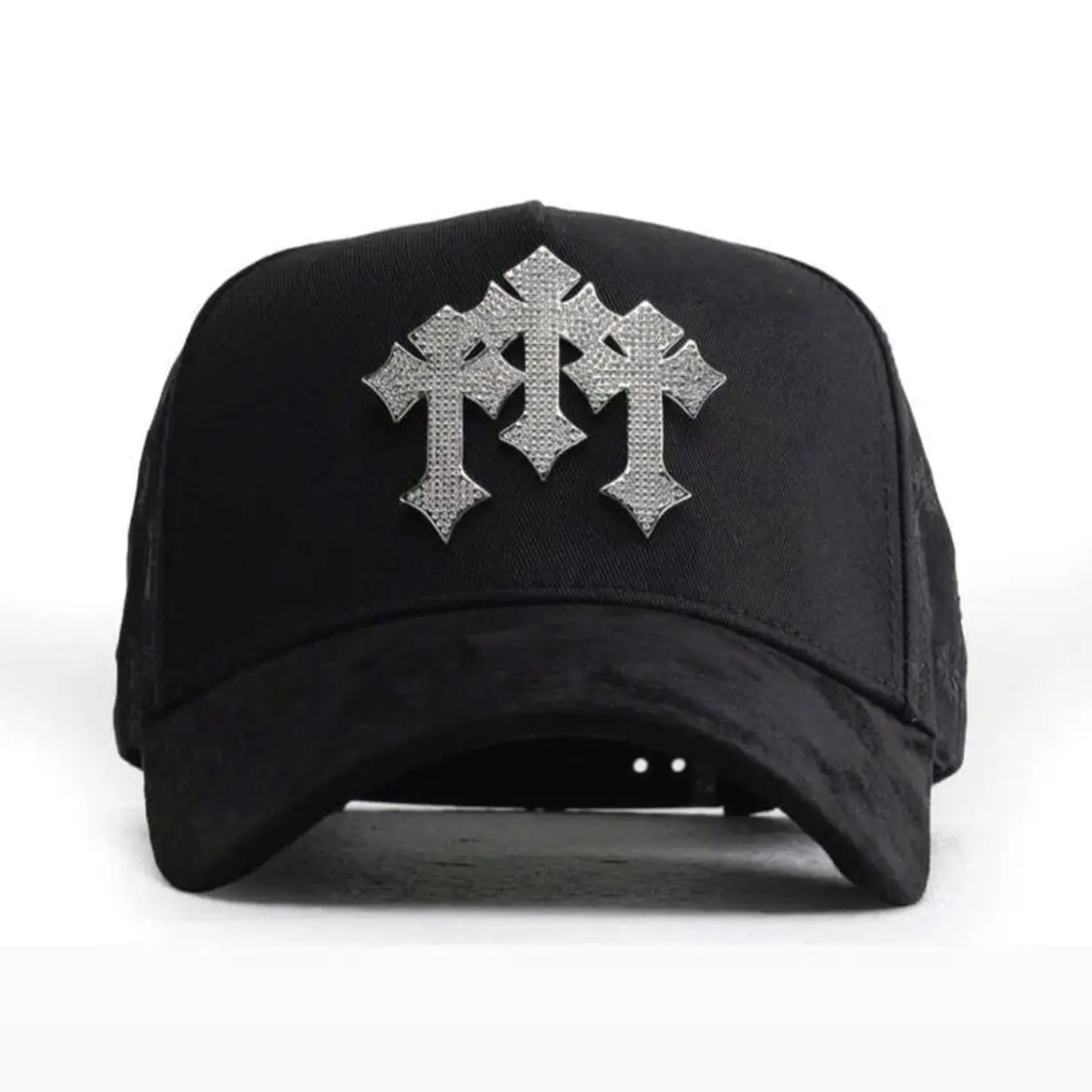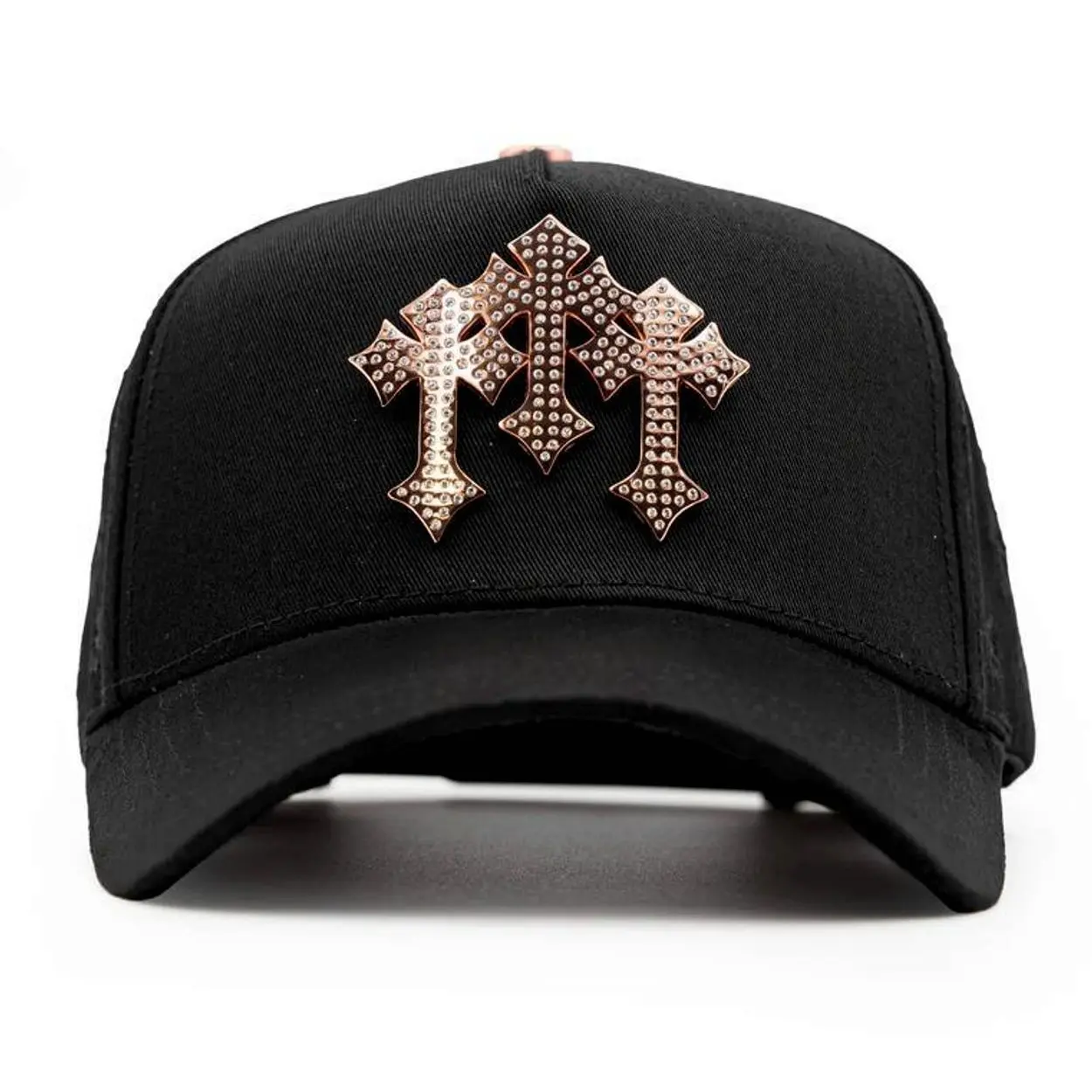Barbas Hats Chrome Rose Gold – Premium Black Adjustable Snapback with 3D Chrome Metal Crosses, Trendy Streetwear Baseball Cap, Gift For Him, Gift For Her.