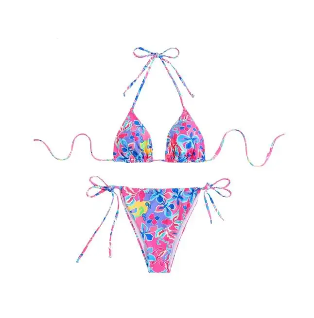 ·Two-piece design with classic triangle bikini top and matching string-tie bottoms