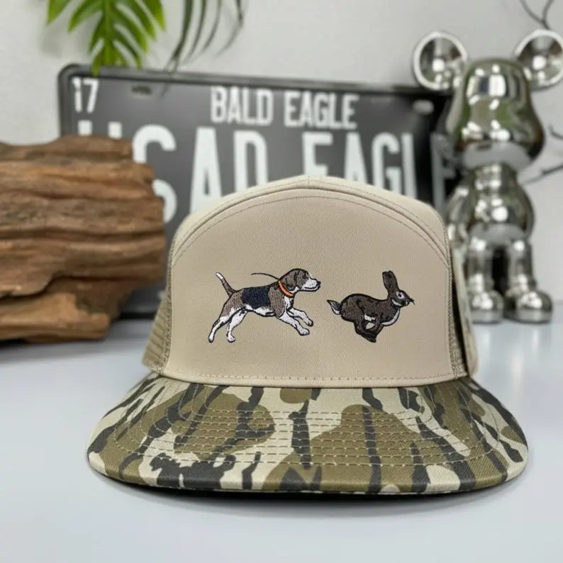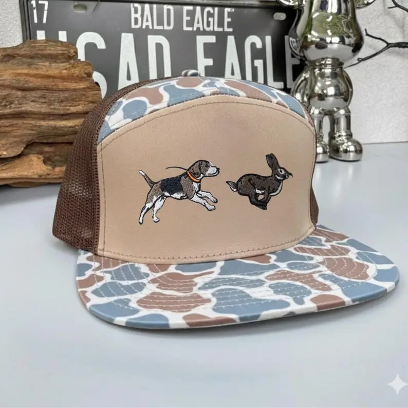 Beagle Rabbit Hunting Camo Trucker Hat Embroidered Dog Hunting Hat Small Game Hunter Cap Adjustable Snapback Outdoor Hunting Gear Gift for Hunters Men Women Funny Beagle Hunting Hat Durable Camo Cap