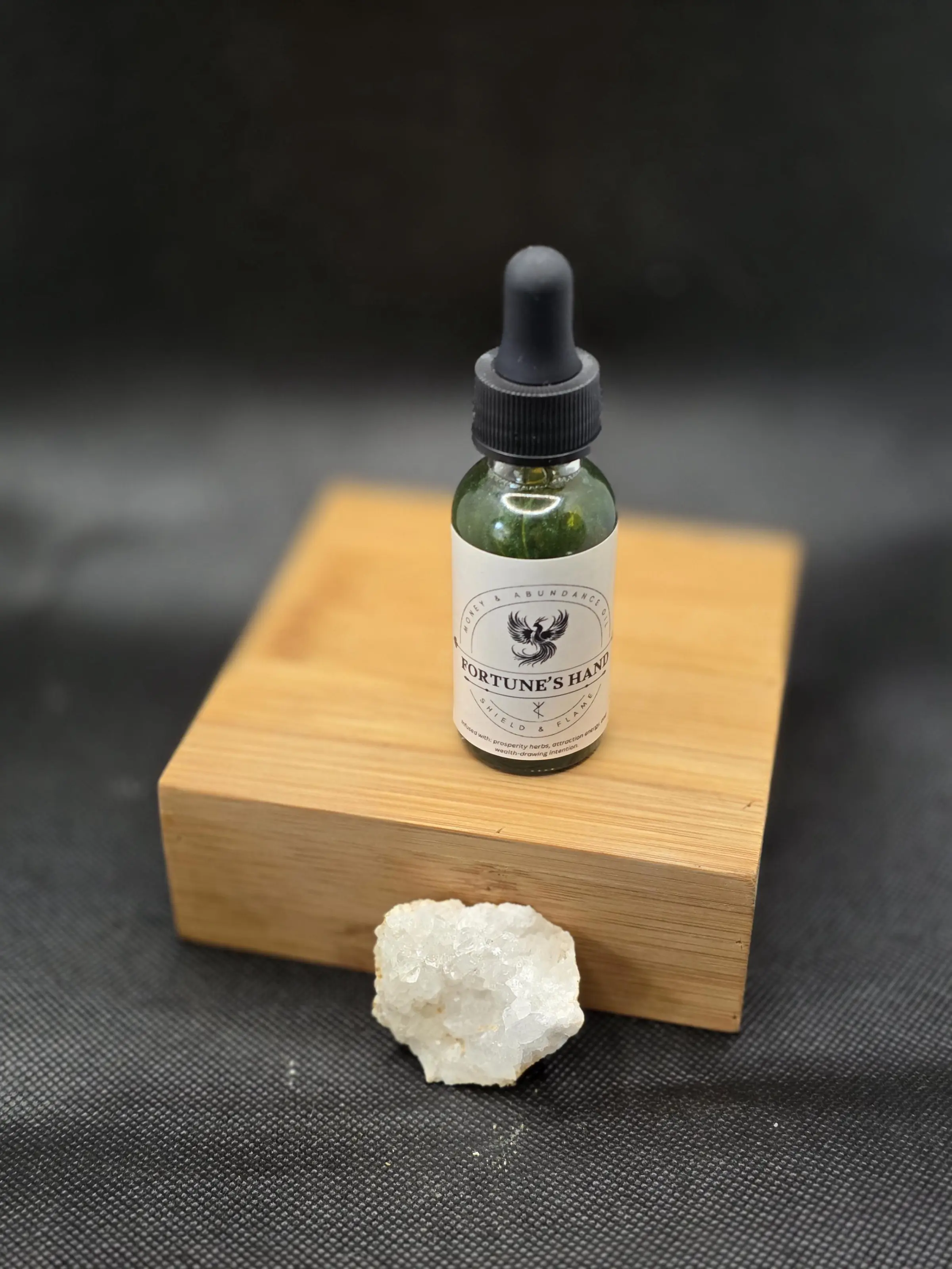 -Fortune's Hand - Abundance & Prosperity: A magnet for wealth, opportunity, and sweet serendipity. This green-gold blend draws abundance your way while clearing blocks around money and success. Open the doors to aligned income and fortunate outcomes.