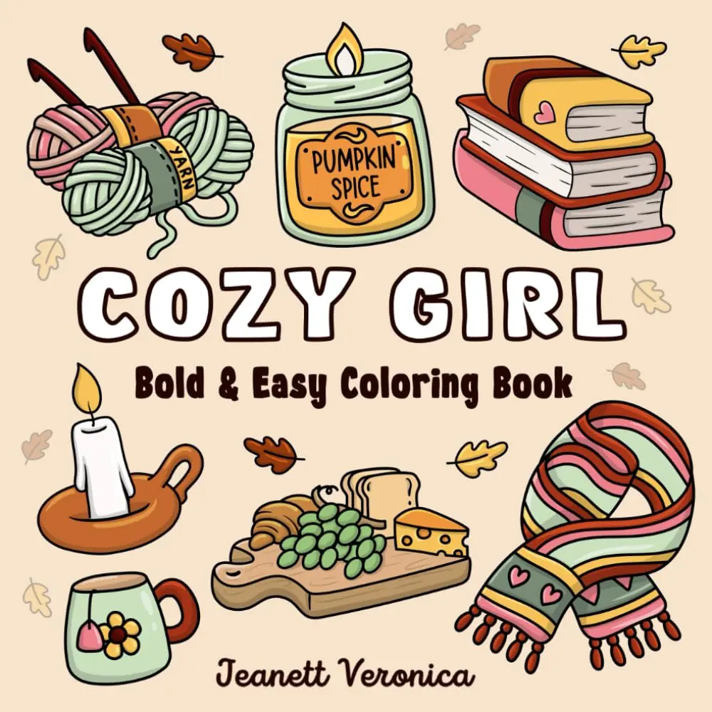 Cozy Girl Coloring Book: Bold and Easy Hygge Inspired Designs for Adults and Teens. Simple, Cute Illustrations with Thick Lines (Cozy Girl Series)