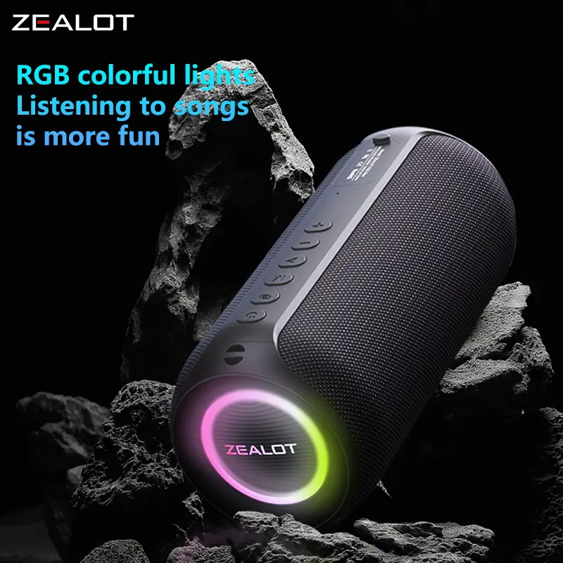 ZEALOTs S32 Pro Portable Wireless Speaker, 15W Long Standby Speaker with RGB Light Effect, Rechargeable Bluetooth-compatible Speaker for Home Outdoor Camping, Multifunctional Wireless Speaker, Outdoor Wireless Speakers
