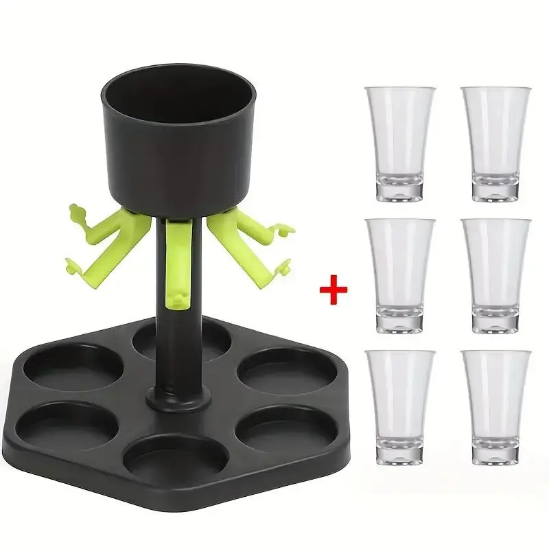 6 Shot Glass Dispenser & Holder, 1 Set Multifunctional Shot Dispenser with 6 Glasses, Cocktail Dispenser for Outdoor Party & Bar