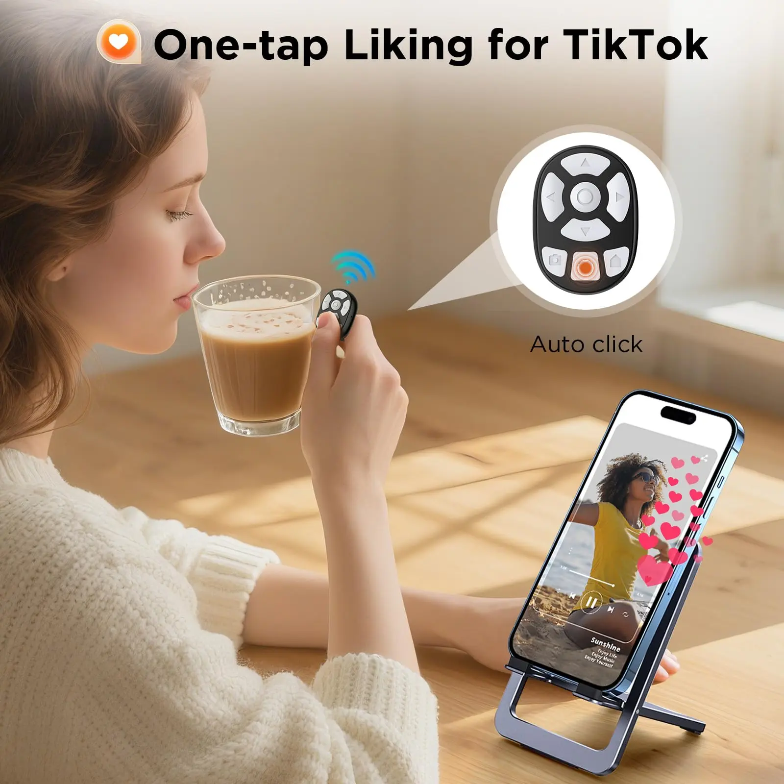 Bluetooth Ring Remote for TikTok, 8-Button Finger Tip Wireless Remote, with Camera Remote Shutter for iPhone & Android (Black)