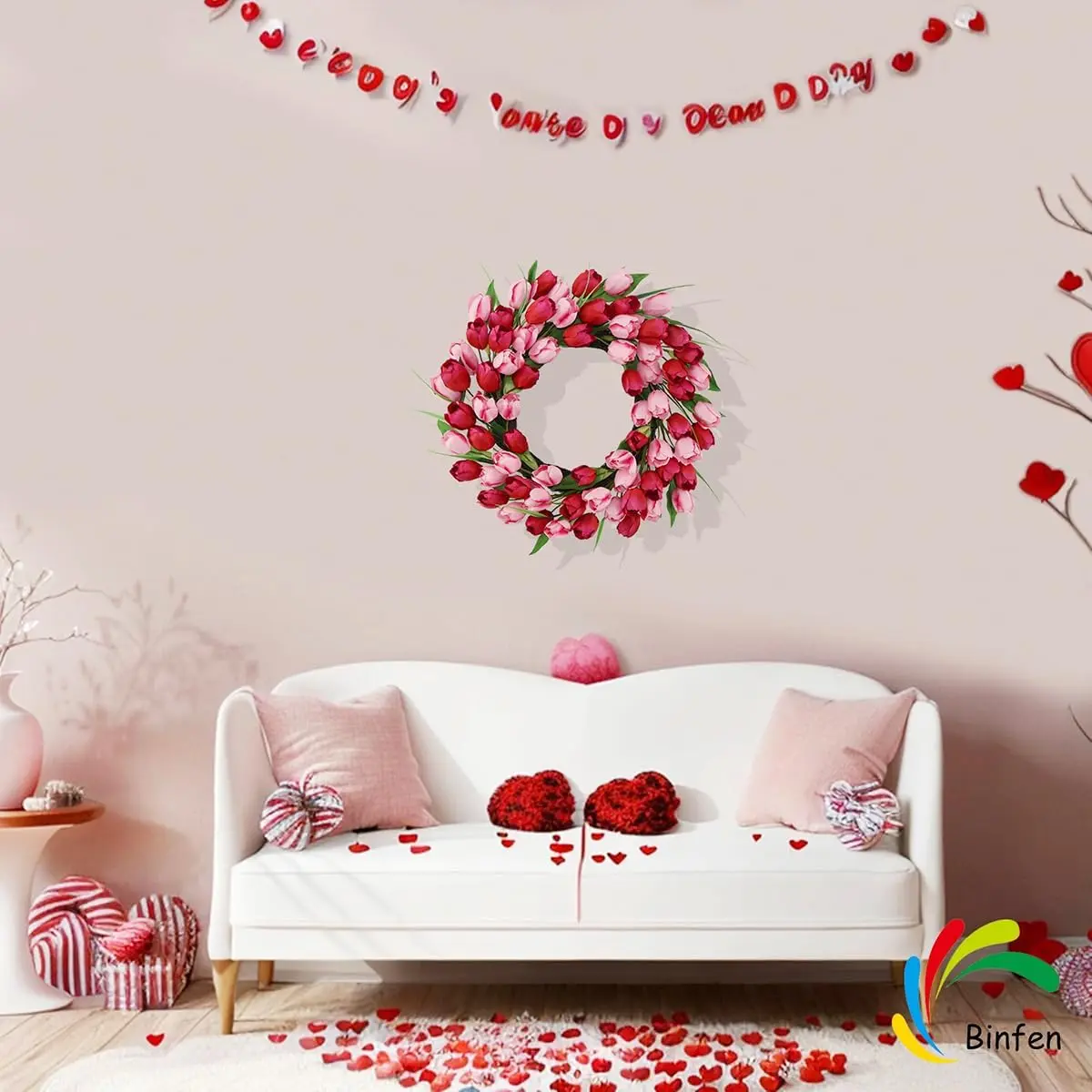 💕[Romantic Valentine’s Day Tulip Wreath]:Designed with pink and red tulips, this valentines day wreath brings a warm and romantic atmosphere to your home, perfect for your front door, entryway, or fireplace decor.💕[18-20 Inches Full & Realistic]:Handcrafted with layers of tulips for a full and lush look.Each flower is carefully arranged to mimic real tulip petals - a premium valentine wreath for front door.This wreath is shipped in a compressed package for safe delivery.Simply gently fluff and adjust the flowers after unpacking, and it will easily expand to its full 18-20-inch size.💕[Durable & Outdoor Safe]:Made with high-quality materials that are fade-resistant and long-lasting.Ideal as an outdoor valentine wreath, front door valentines day decorations, or indoor valentine decor.💕[Easy to Hang & Fits Most Doors]:This valentine door wreath fits standard doors, walls, windows, and porches, creating a warm and romantic greeting the moment you walk in.💕[Perfect Gift Idea]:A thoughtful gift for family or friends. Use it as a valentines day wreaths for front door, pink wreaths for front door, or spring door decor to brighten any space.