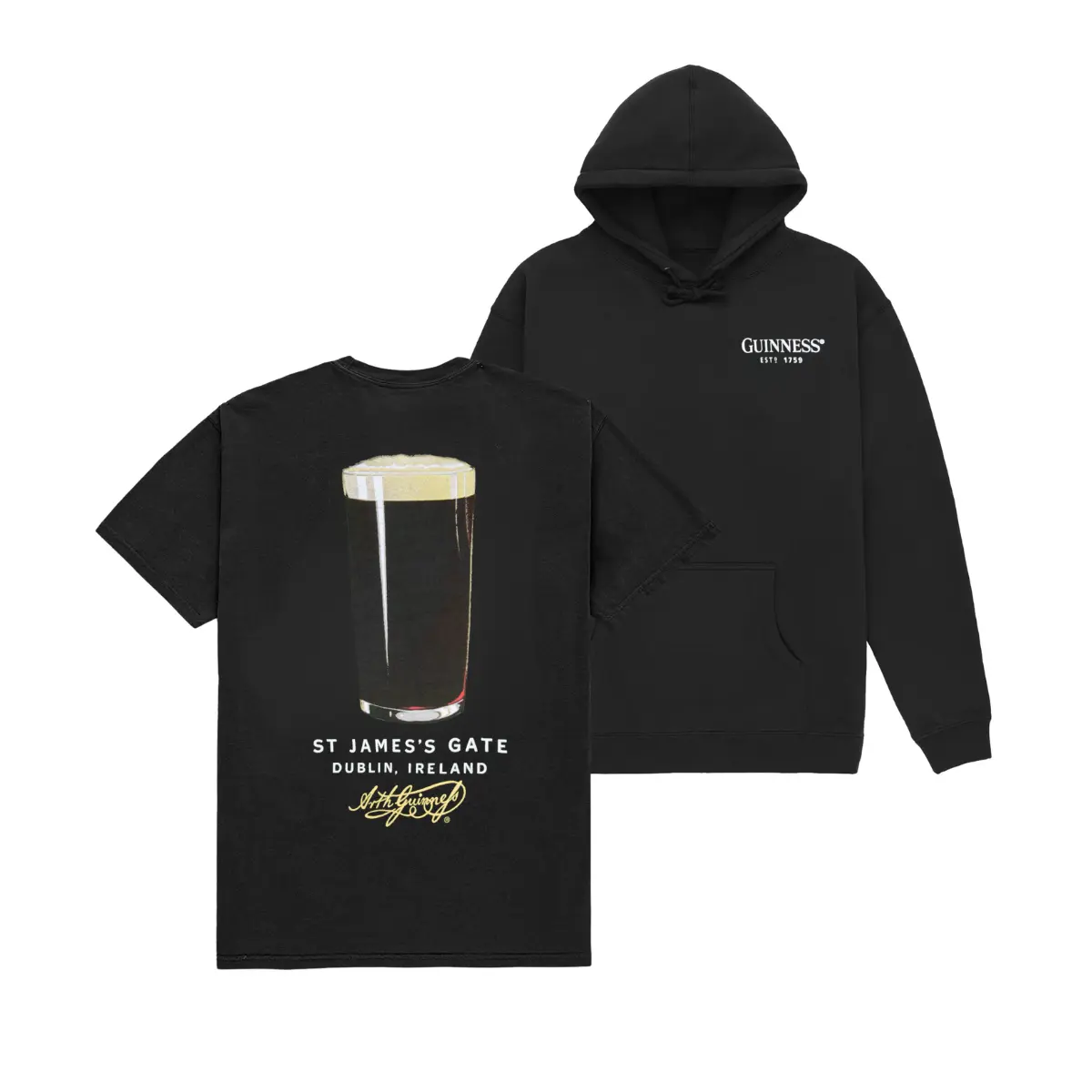 Keep it timeless with this Guinness St James Gate T Shirt featuring a clean 2 sides graphic design and a bold pint beer glass print. The minimal layout delivers a strong classic pub aesthetic.