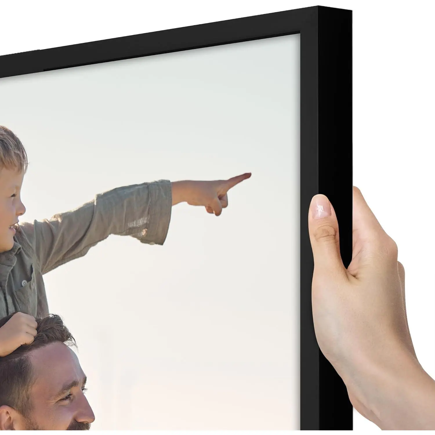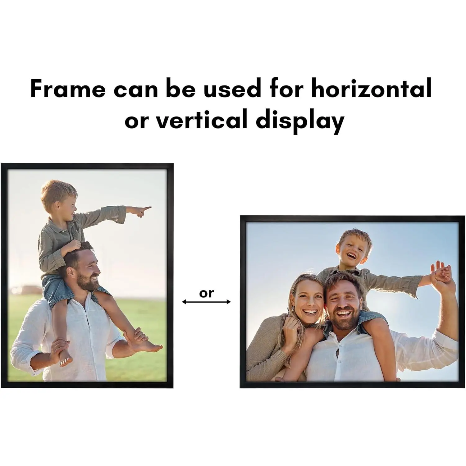 Add an elevated touch to any home or office decor with this gallery-style frame, featuring a sleek black finish and a 0.8x1.4" premium, deep molding. It's a statement piece that puts your photos or artwork center stage. Our 18x24 frame is crafted from engineered wood-plastic composite and display 18x24 photos. The polished plexiglass adds a pristine finish, making this stylish frame stand out. Display it your way with ease! The black picture frame includes hanging hardware for both vertical and horizontal placement, ensuring quick, hassle-free installation on any wall so your favorite memories will always be beautifully showcased. Say goodbye to boring walls with these photo frames. Designed to impress, they add a luxe, timeless style that turns your cherished moments into a unique display. They’re perfect for gifting, too! Why Choose : Our expertly crafted decor, including this black frame, offers style and protects your cherished moments. Thoughtfully packaged for safe delivery, combines quality and design to enhance any space.