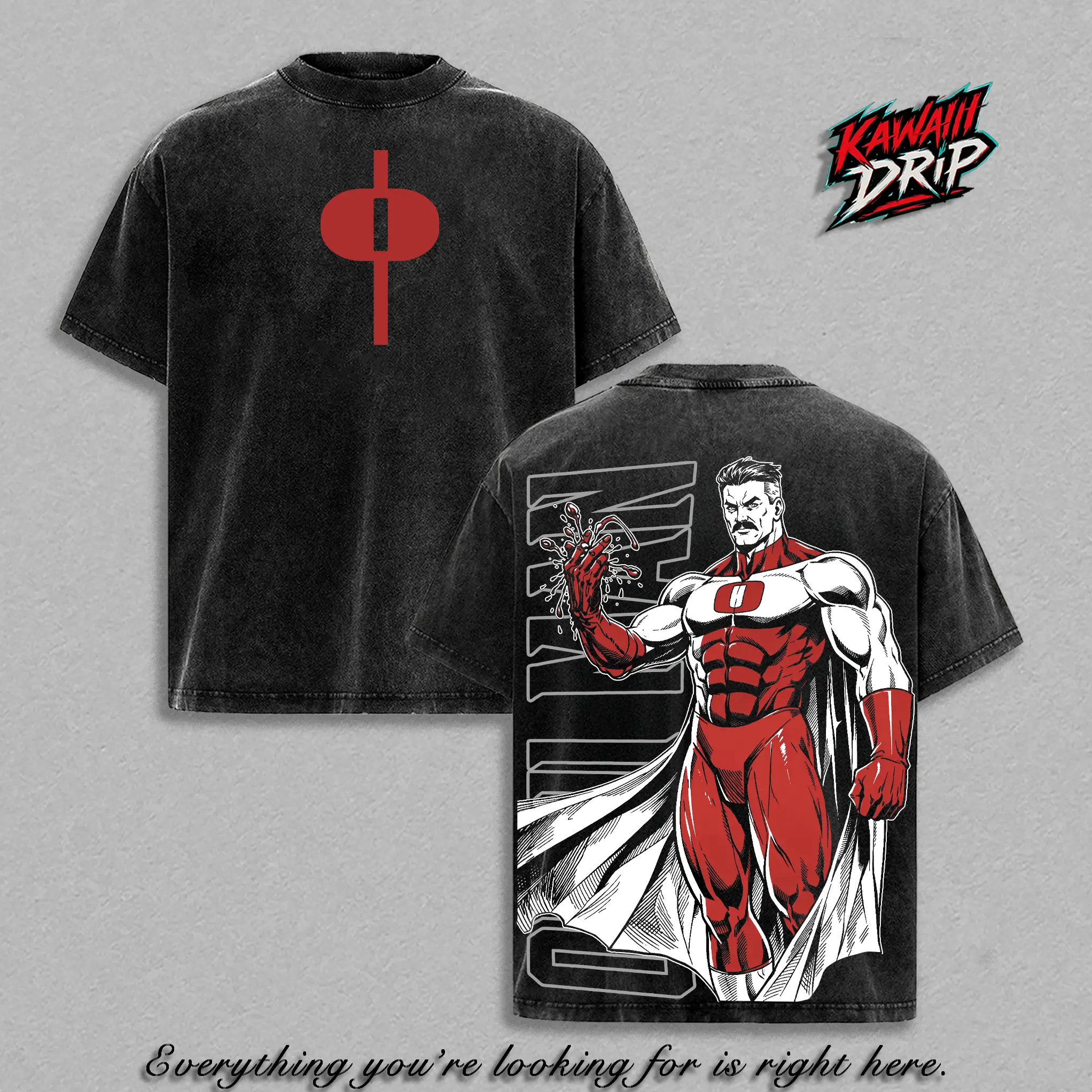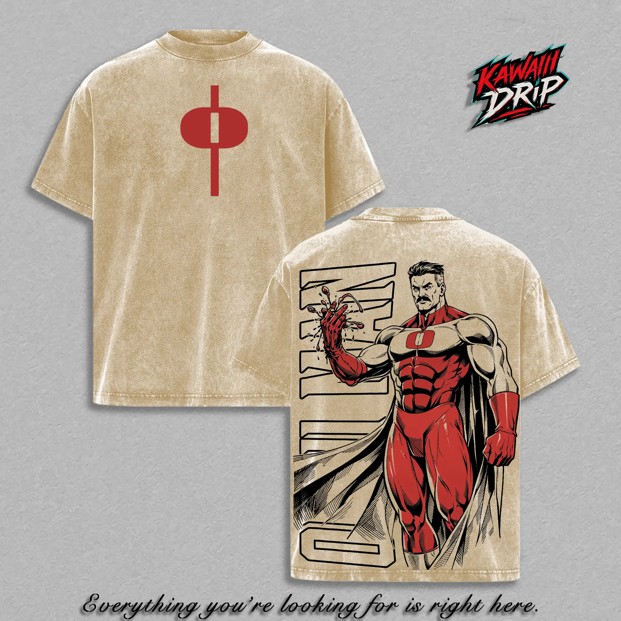 5. Omni-Man - Invincible Graphic Tee Vintage Washed Oversized Heavyweight T-Shirt, Anime Comic Streetwear Shirt, Blood Power Back Print Graphic Tee, Heavy Cotton Unisex, Gym Pump Cover Anime Gamer Outfit, Gift For Invincible Fans
