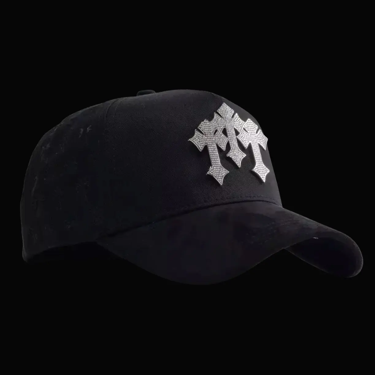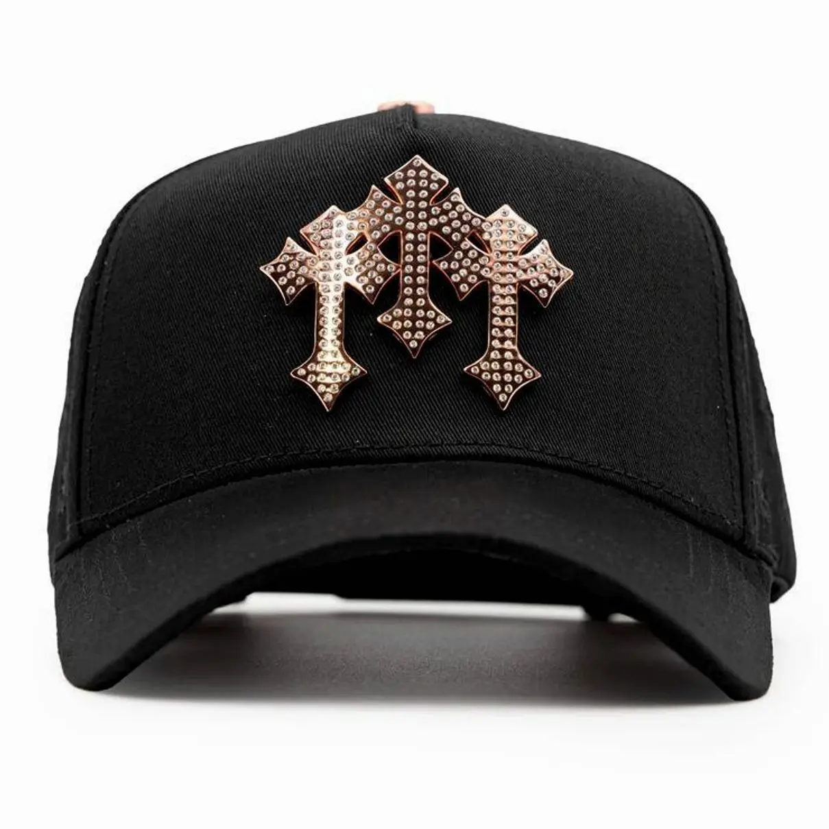 Barbas Hats Chrome Rose Gold – Premium Black Adjustable Snapback with 3D Chrome Metal Crosses, Trendy Streetwear Baseball Cap, Gift For Him, Gift For Her.