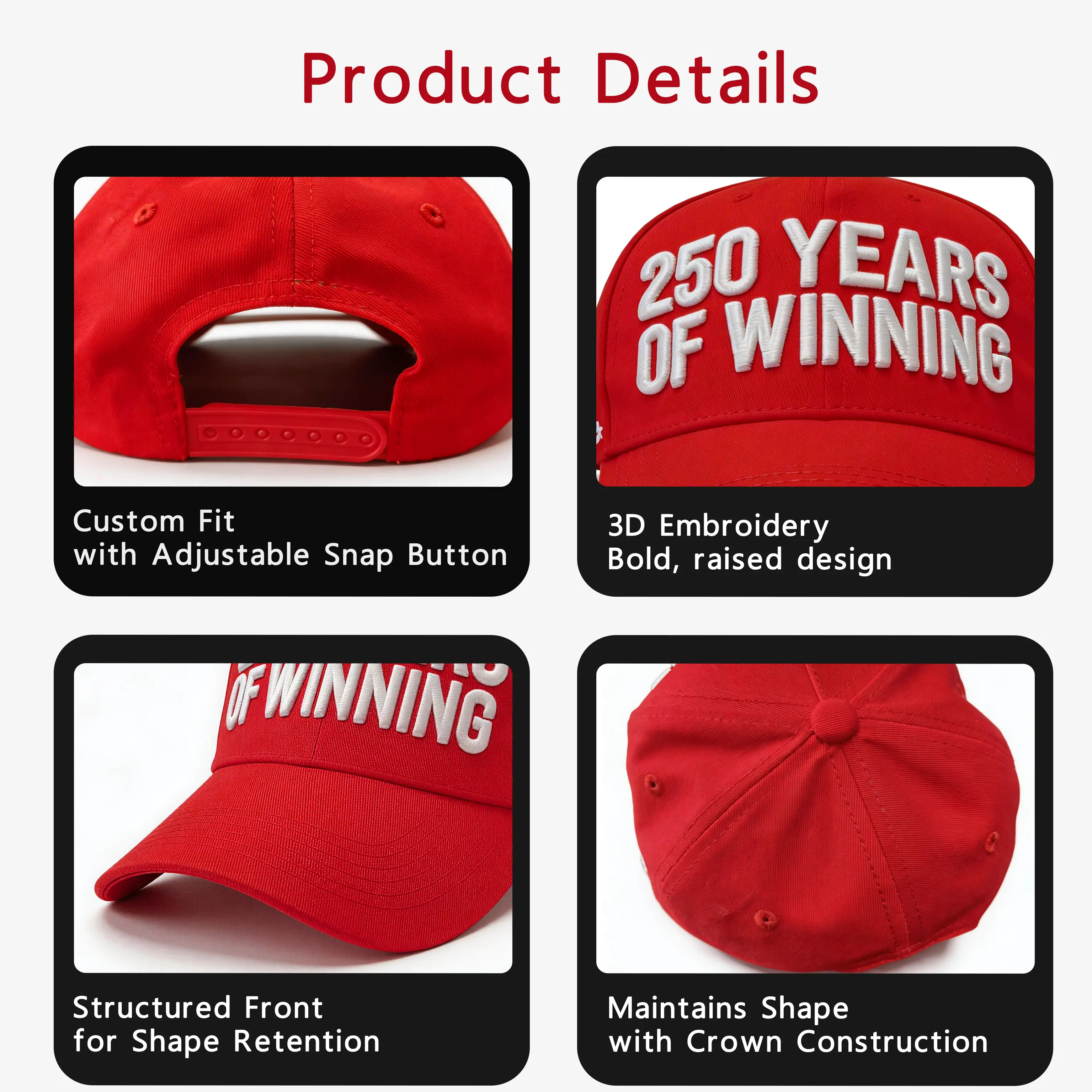 Bold 3D Puff Embroidery: Featuring high-quality, raised "250 YEARS OF WINNING" text that pops. This isn't just a print—it's premium craftsmanship you can feel.