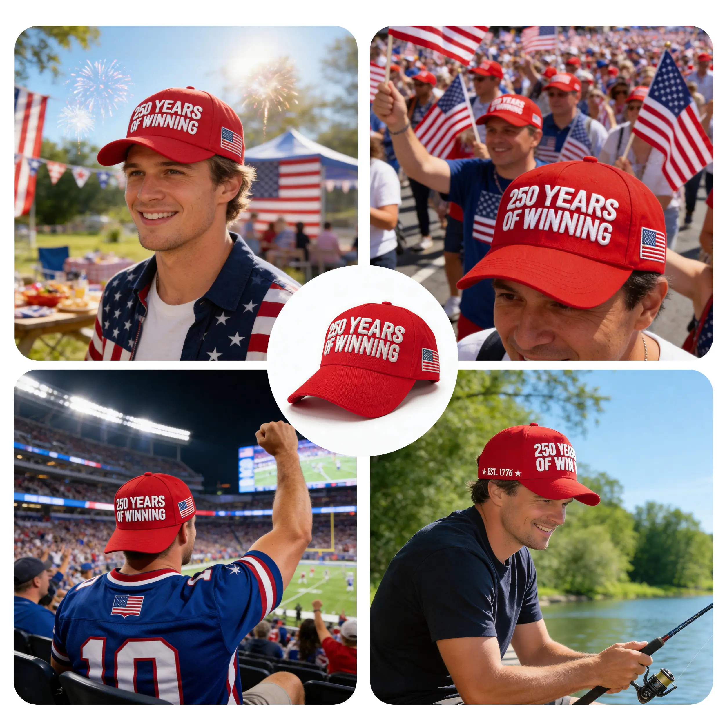 Design: "250 Years of Winning" + "EST. 1776" + USA Flag Patch