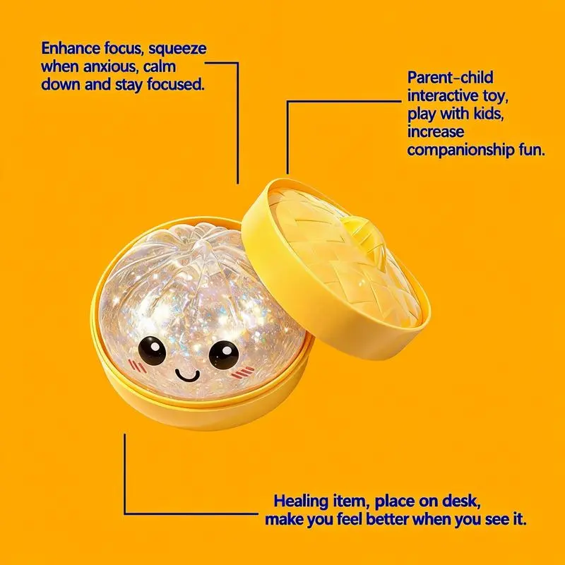 Meet the viral Giant Glitter Bun Squishy that’s taking over TikTok! This cute, satisfying fidget toy features a soft, sparkling bun design with a fun mystery surprise inside. It comes with a mini steamer box for easy storage and display, making it the perfect desk companion, stress reliever, and gift for all ages.