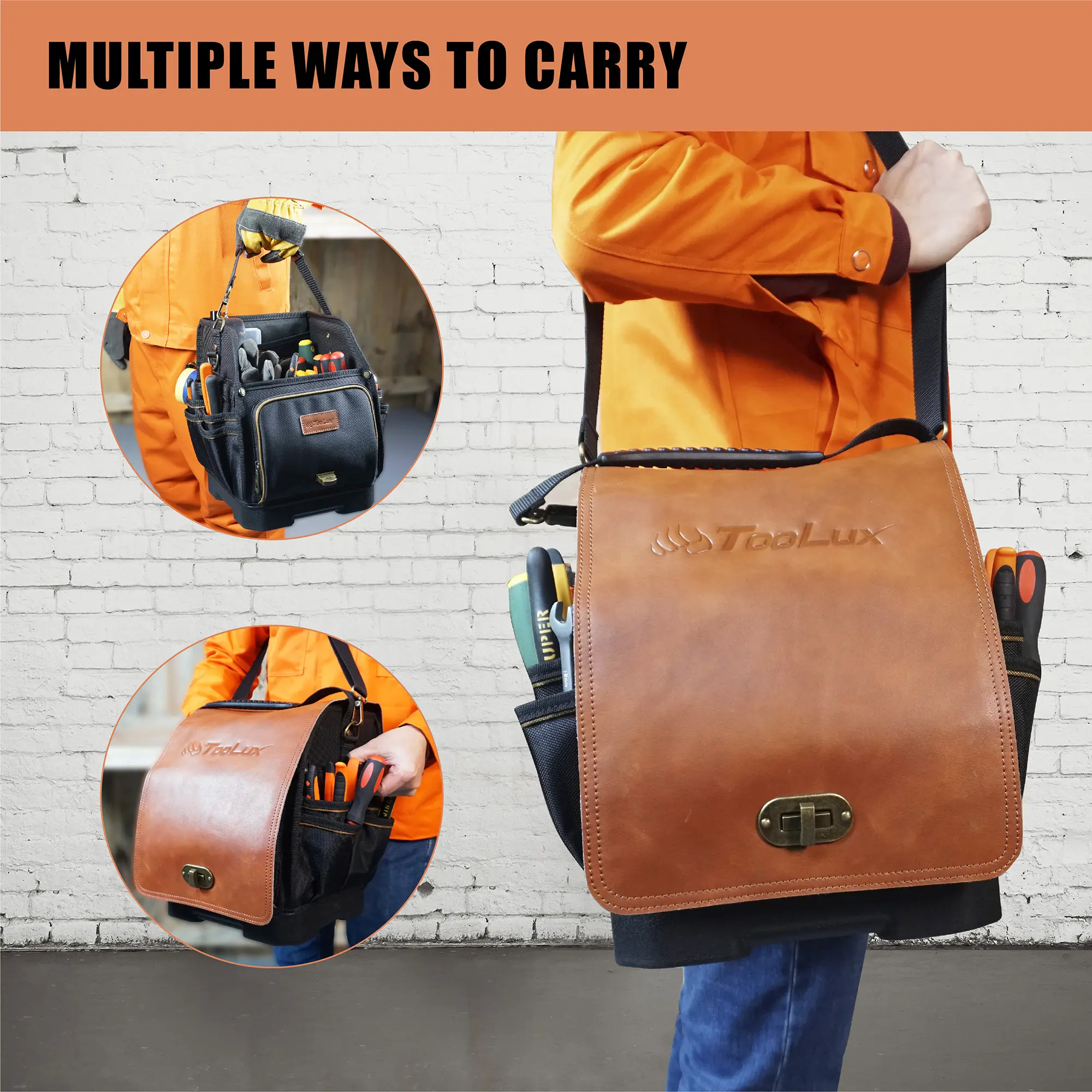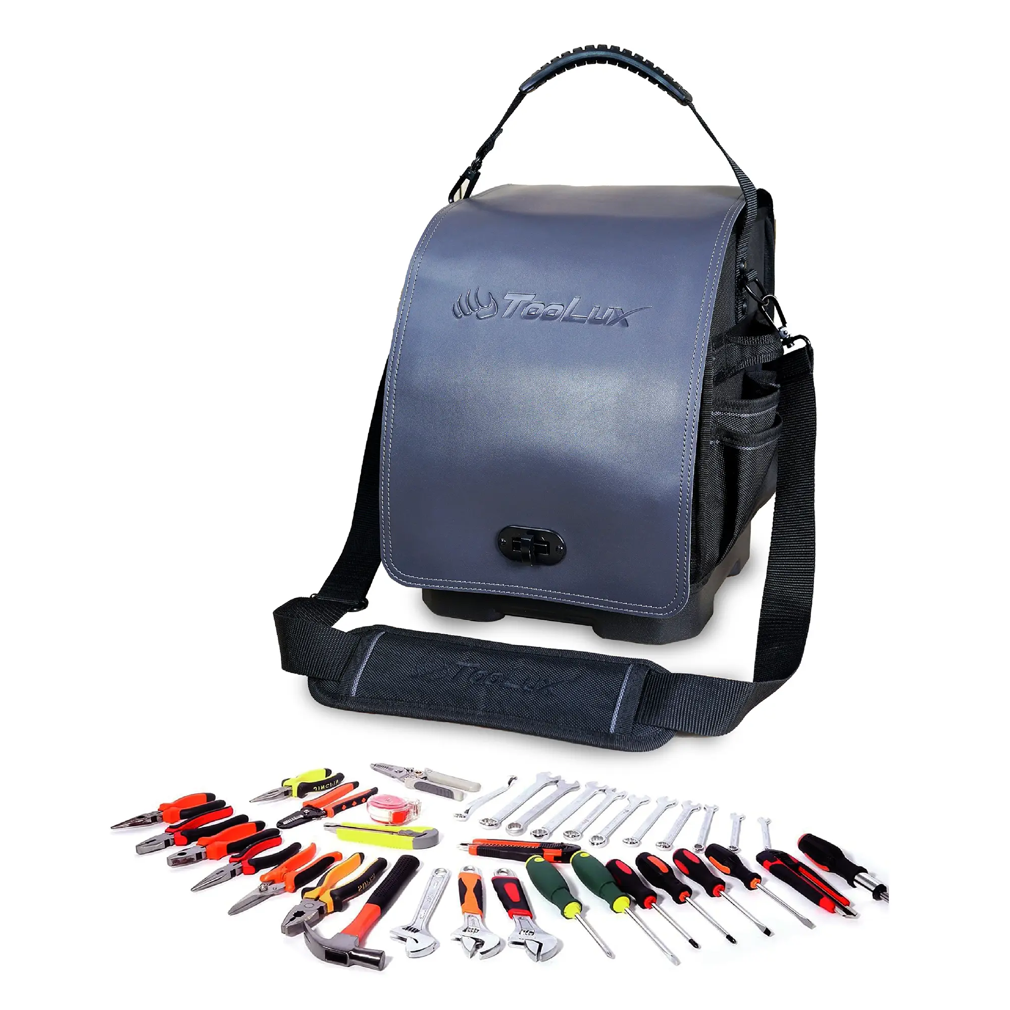 Introducing the Electrician Tote Heavy-duty with Real Leather Flap in Leather Hue. At Toolux, we pride ourselves on providing high-quality, luxury toolbags, and this tote is no exception. Crafted with real leather, it exudes elegance and durability, making it a must-have for all electrician tote users.