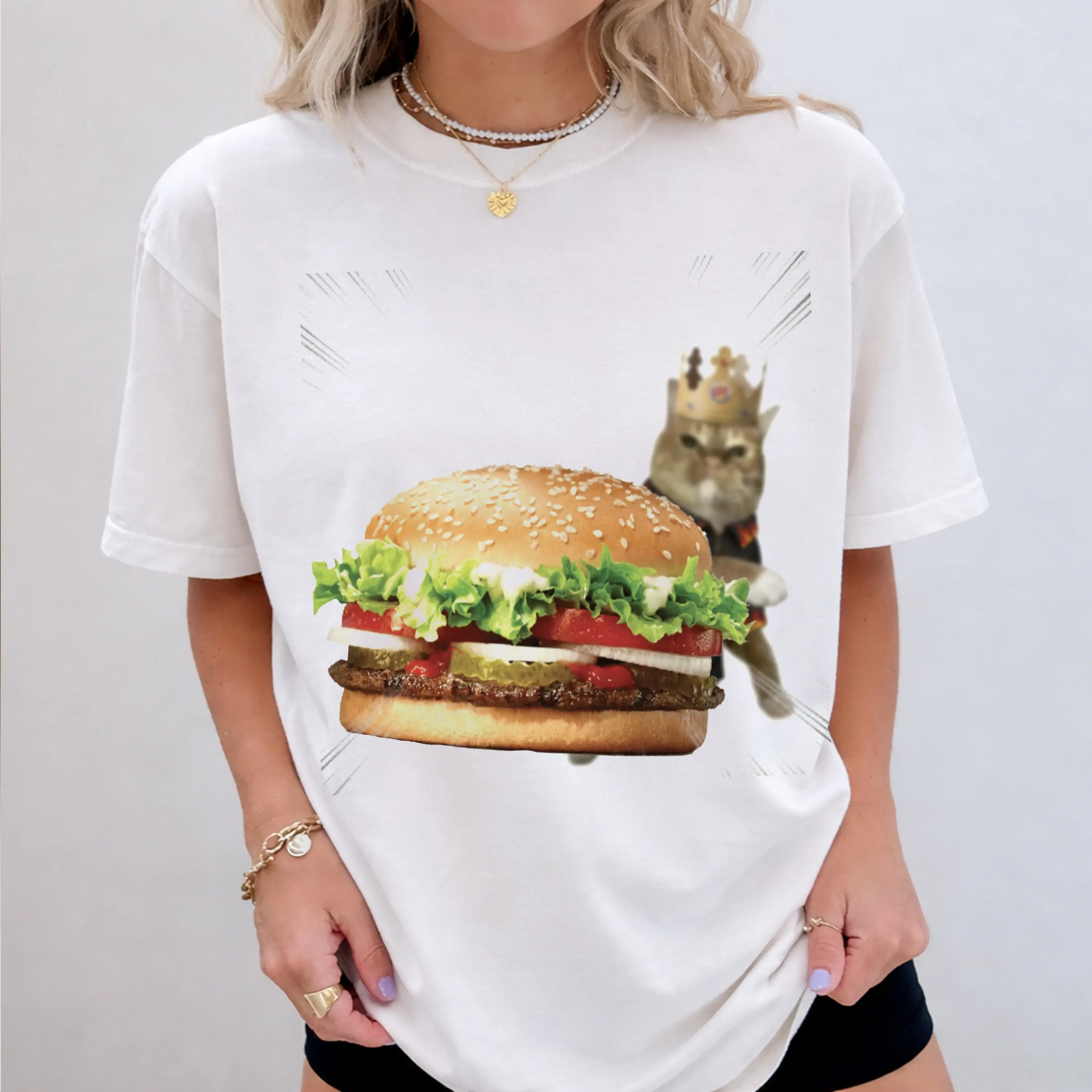 Funny Burger Cat Shirt, Meme Cat Burger T-Shirt, Cute Cat King Graphic Tee, Fast Food Meme Shirt, Funny Food Lover Gift, Cat Meme Tee, Viral Graphic T-Shirt, Humor Shirt