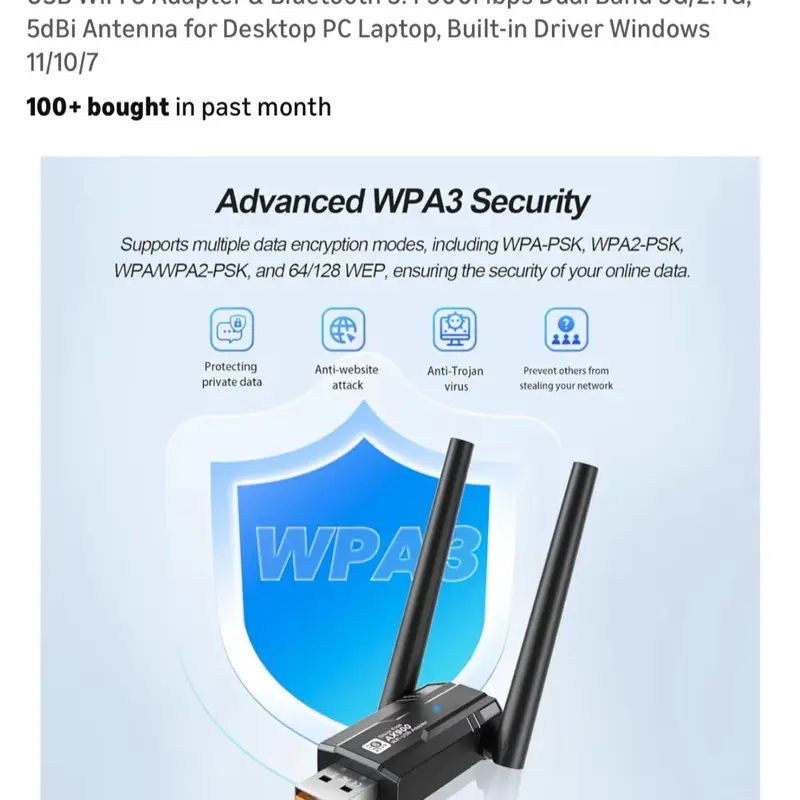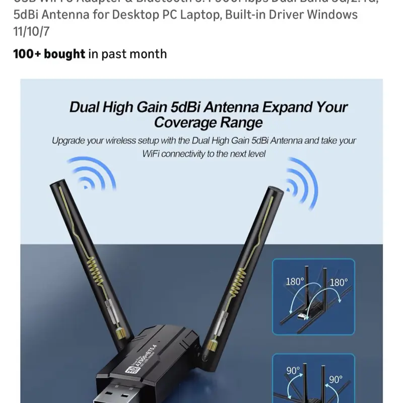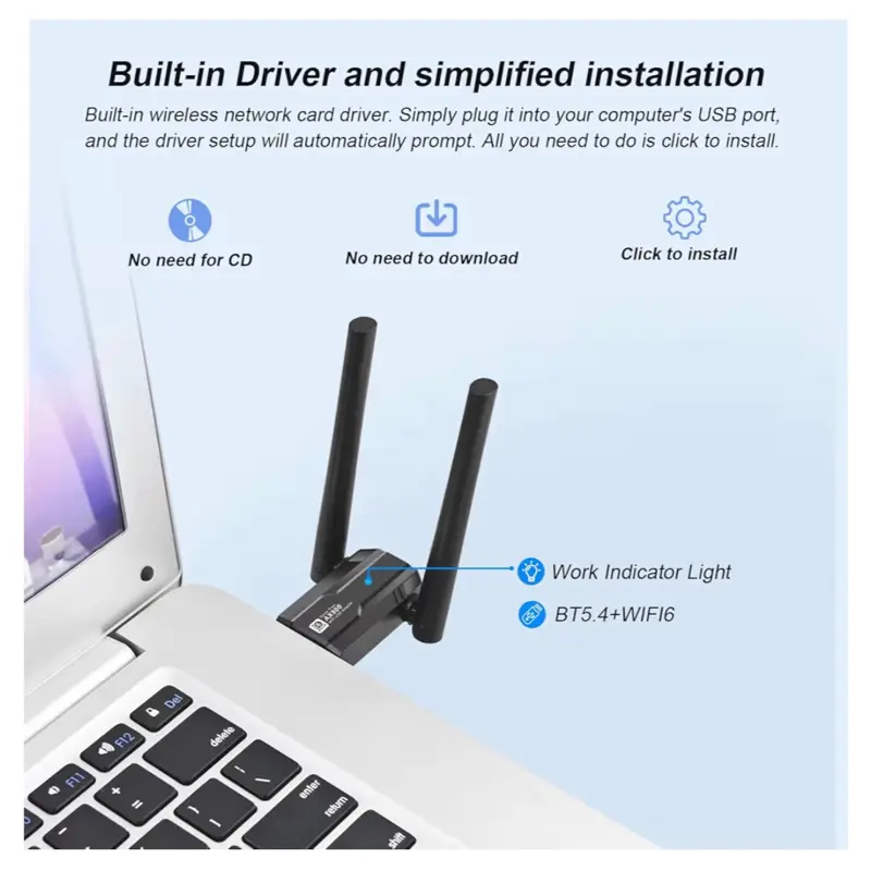 USB WiFi 6 Adapter & Bluetooth 5.4 900Mbps Dual Band 5G/2.4G, 5dBi Antenna fo...