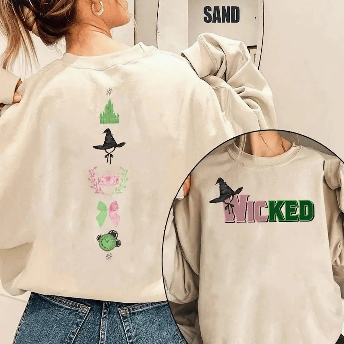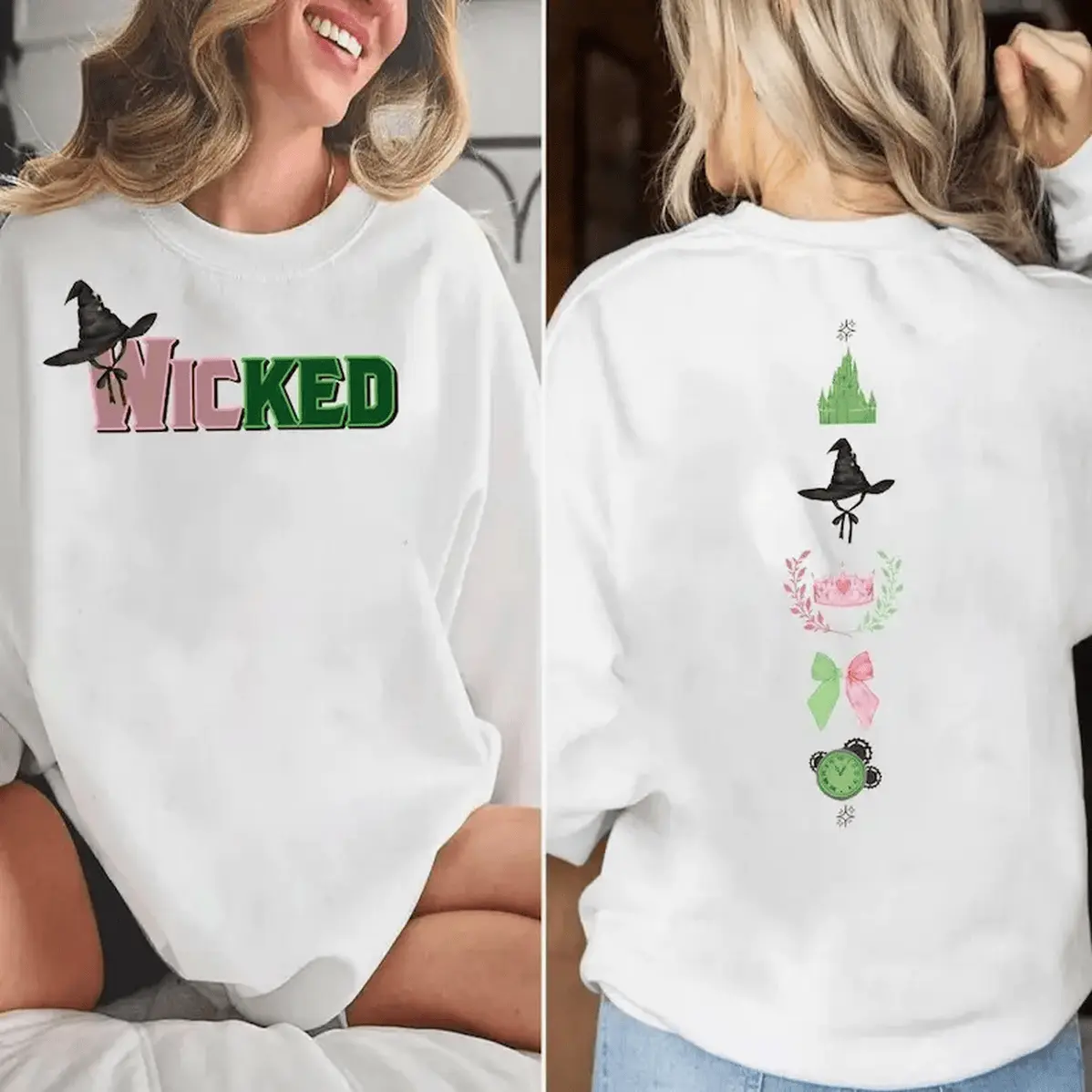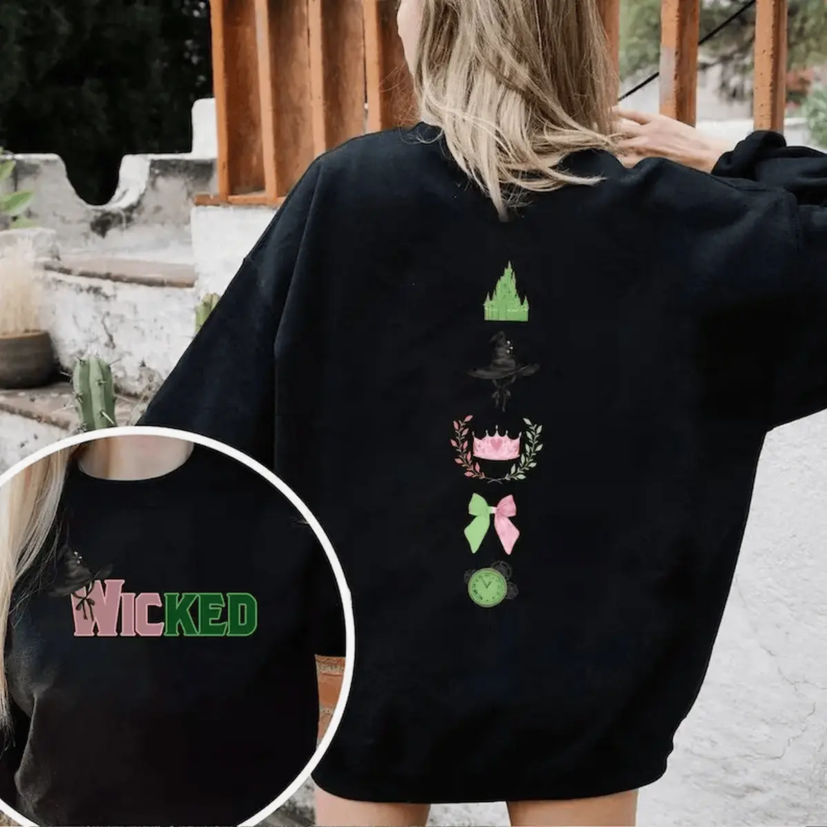 Wicked Colorful Sweatshirt Defy Gravity Broomstick Magic Wand Hoodie Wizard Of Oz Tee Witch Pink And Green Psb159 160 Hoodied Everyday Cotton Sweaters