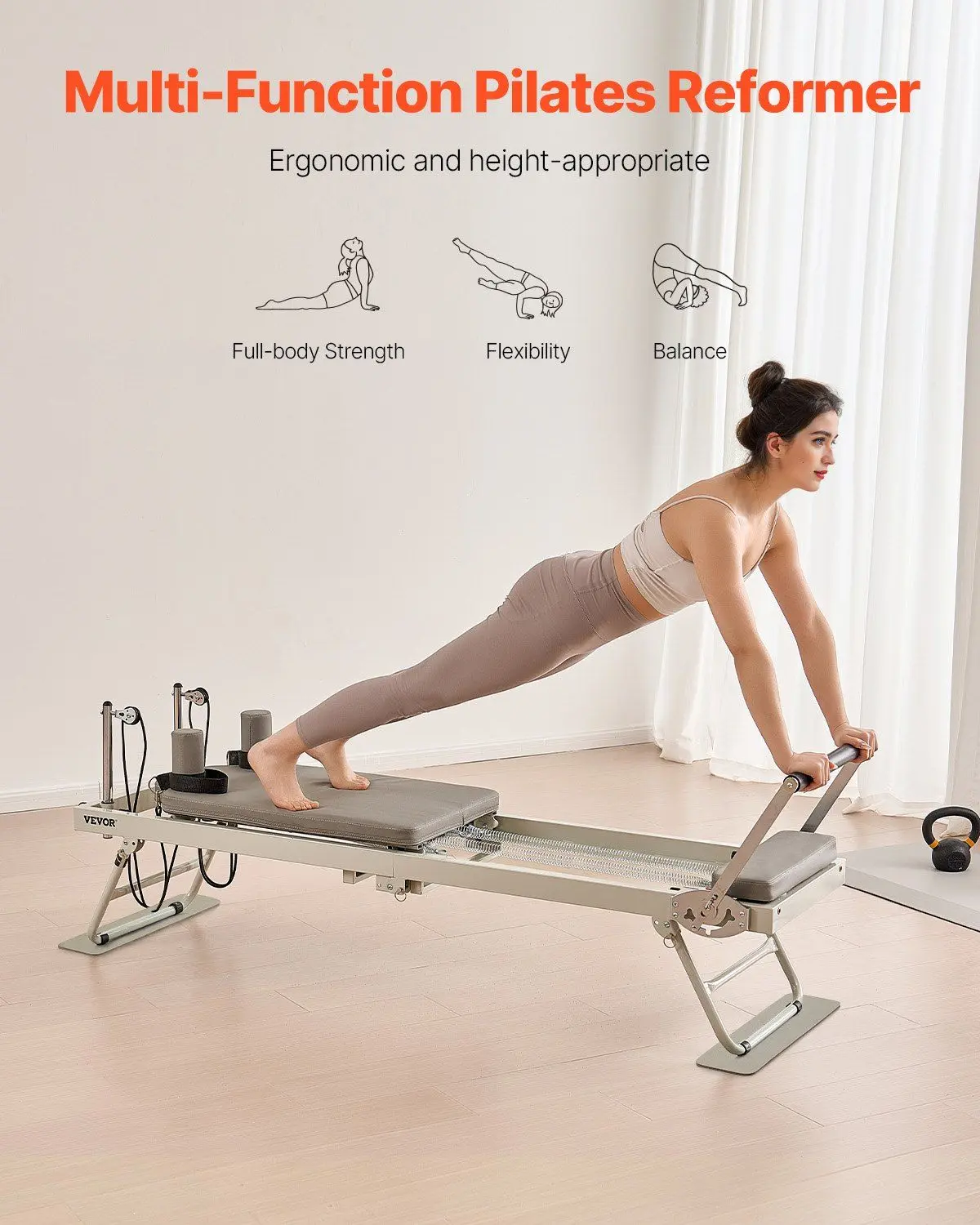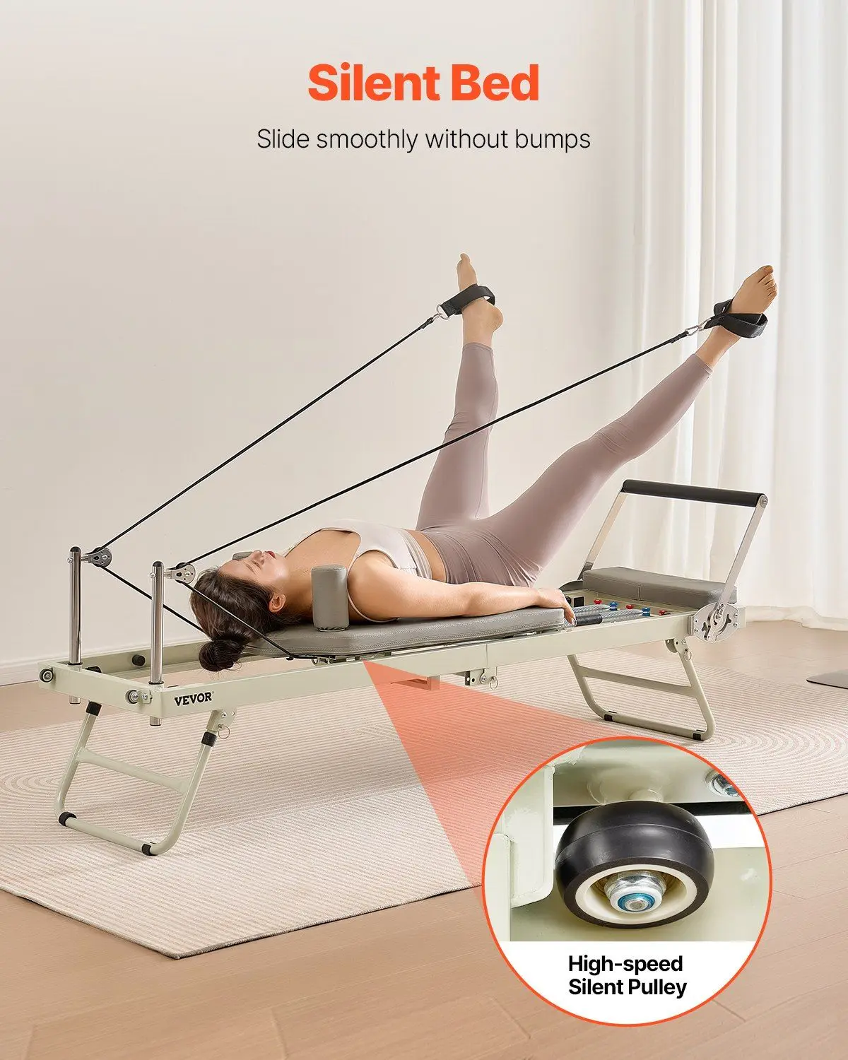 VEVOR Foldable Pilates Reformer, Pilates Workout Machine for Home Gym Studio Use, Pilates Bed with Dual Resistance- Spring & Cord, Reformer Set for Advanced Users and Beginners, Up to 400 LBS