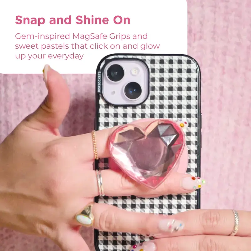 Crystal Hearts PopGrip for MagSafe - Magnetic Phone Grip & Stand, Swappable Top, Wireless Charging, Compatible with All PopMounts, Secure Grip, Hands-Free Use - Smartphone