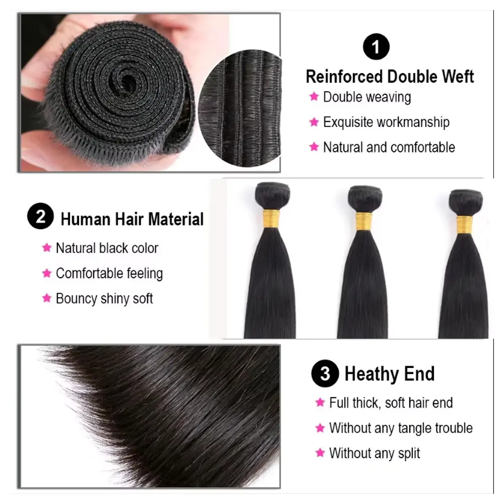 Straight Human Hair Bundles Material: Brazilian Virgin Bundles Human Hair Straight, Cut From Young Girls,Clean Soft and Stay Beautiful Longer.