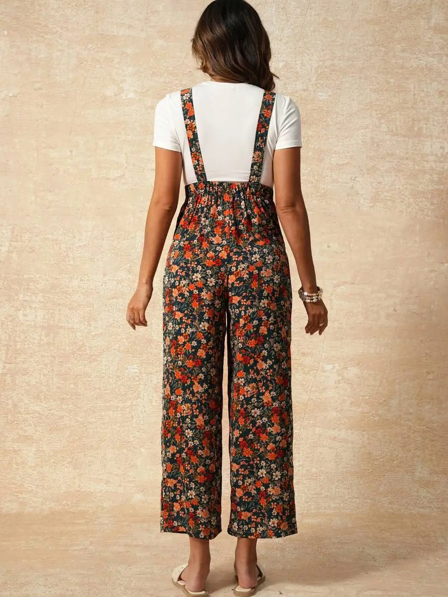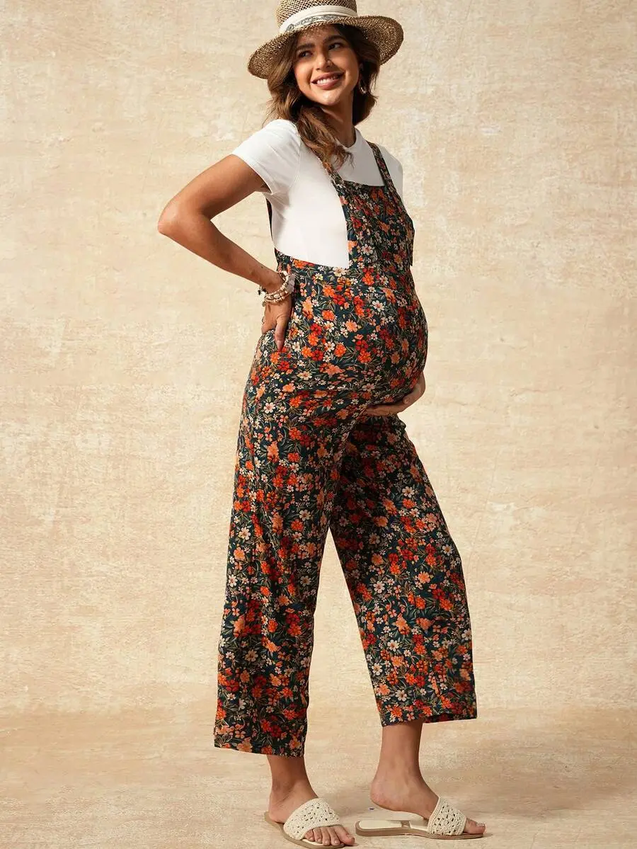 DANLIEN Boho Mama Floral Print Maternity Jumpsuit