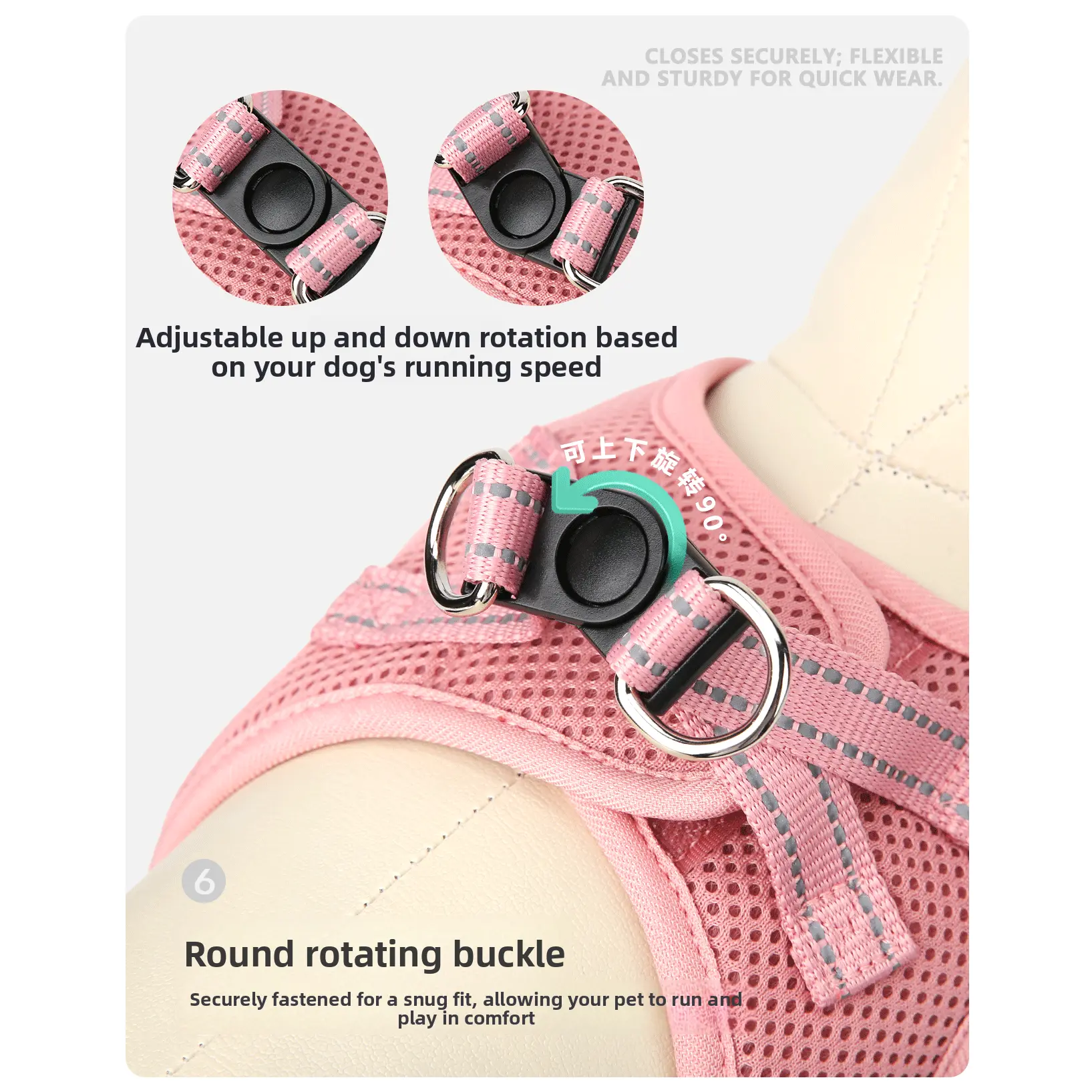 Light pink (chest and back + traction rope)
