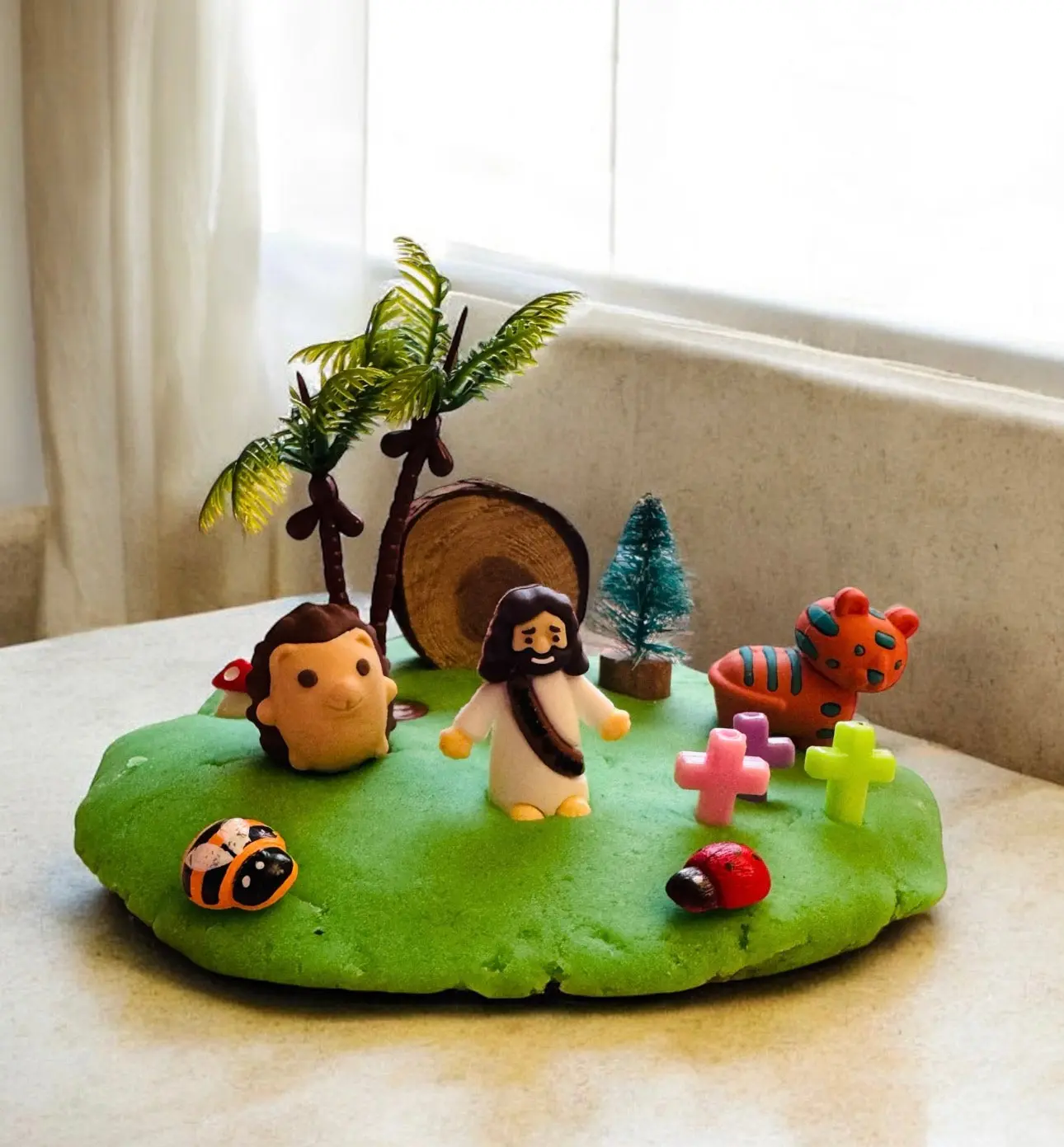 These Imagination Jars are packed with playdough, mini Jesus and lots of pieces to create to your own nature scene 🍃🪸