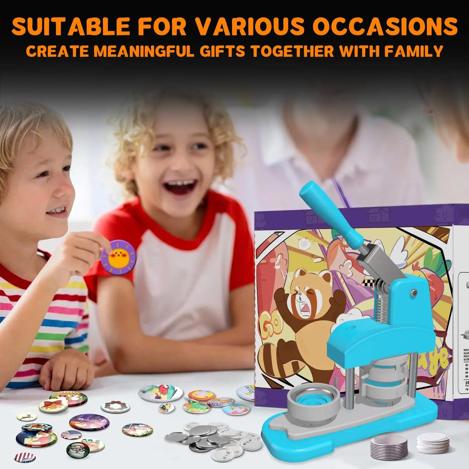 58mm/2.25in Button Making Press Machine is suitable for family gatherings, birthday parties, this badge maker encourages children’s creativity and imagination while developing their hands-on skills and concentration.Whether for personalized badge designs or handcrafted gifts, this badge maker is the special gift choice for children and parents.