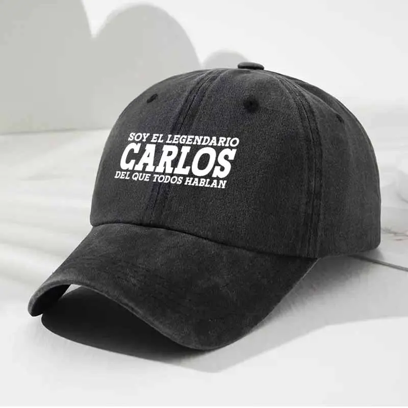 Carlos Legend Baseball Cap - Black with White Text, Adjustable hat, Breathable Mesh Back, Perfect for Outdoor Travel & Casual Wear, Outdoor Headwear | Adjustable Cap | Durable Headgear