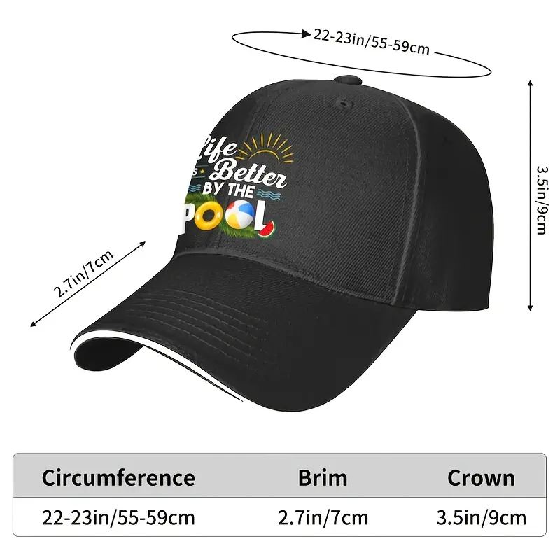 1pc Men'S Life Is Better at The Pool Summer Vacation Summer Sandwich Baseball Cap Adjustable Breathable Casual Hat Spring/Summer/Autumn/Winter Hat Christmas Gift
