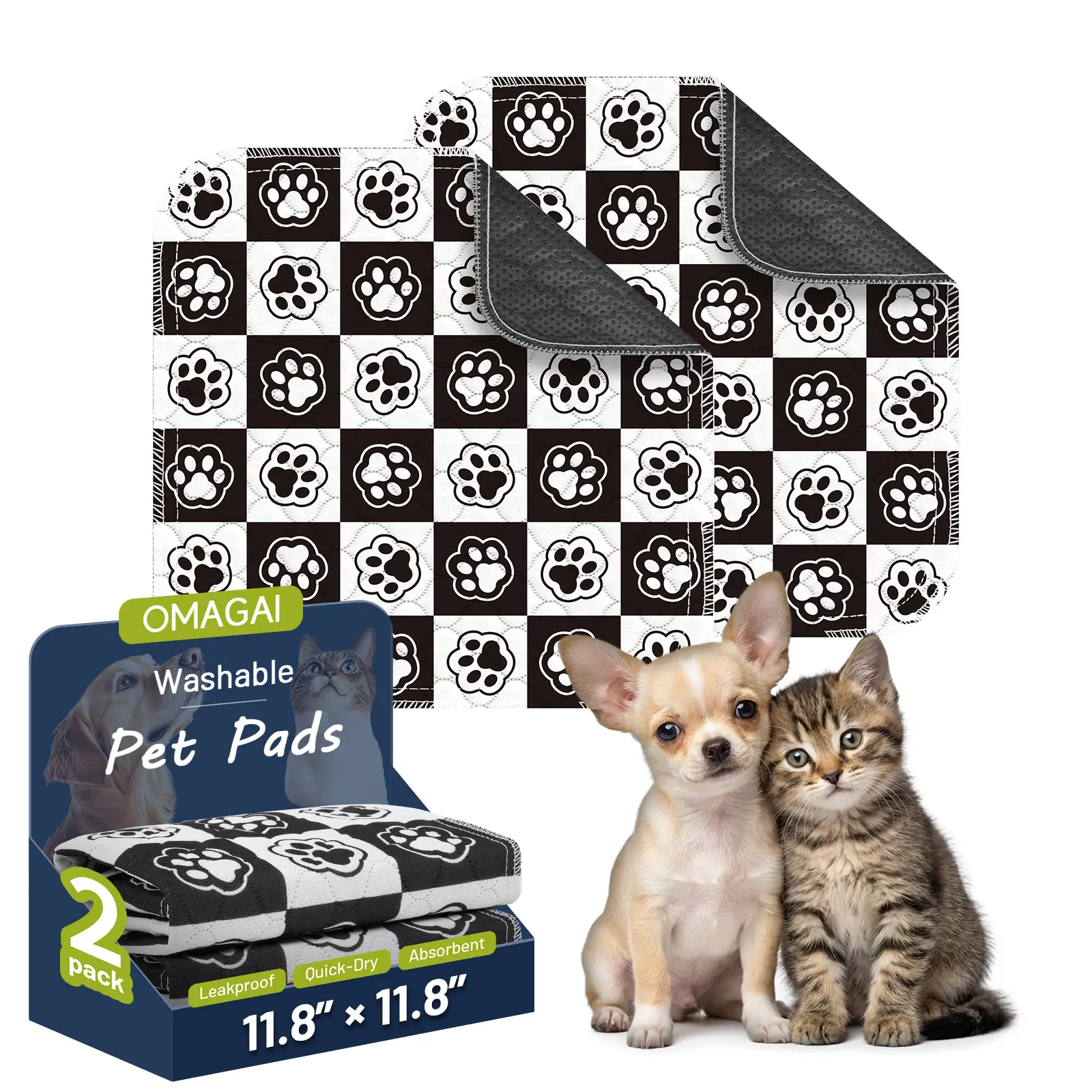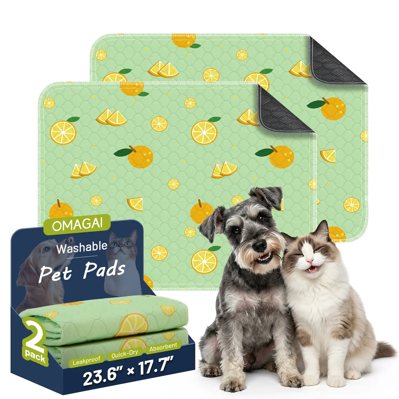 [Cute Design Dog Pads] Comes in a 2-pack. Available in with cute patterns, suitable for all dog breeds. Our stylish washable pee pads can be used as puppy training pads, playpen mats, crate mats, waterproof floor mats, pet pads, and more.