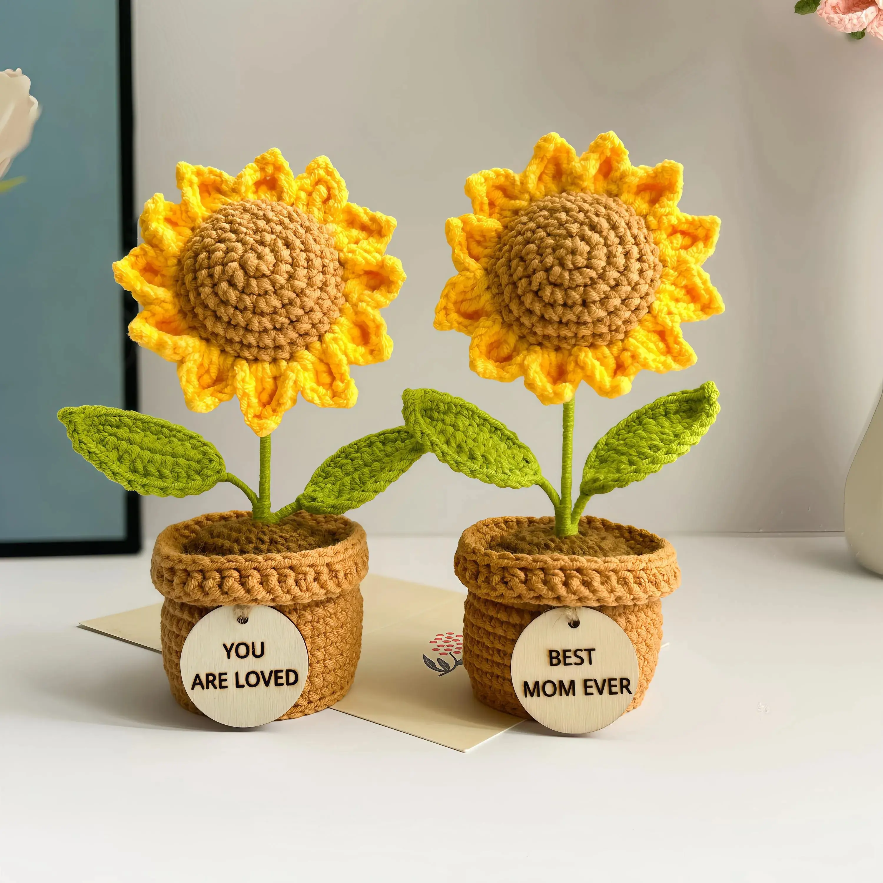 Crochet Sunflower Plant, Sunflower in Pot, Home Decor, Encouragement Daily Positive Affirmations, Birthday, Christmas Gift, Gift for Her