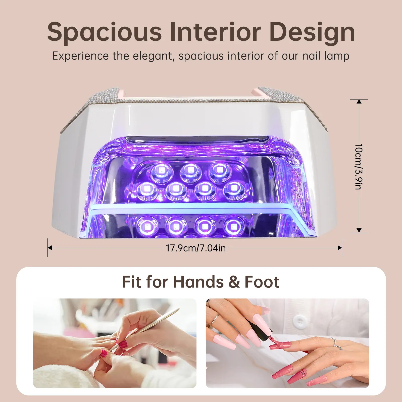 ·【4 Timing Modes】LED nail light for gel nails offers 4 flexible curing times: 15s/30s/60s/90s. The countdown is clearly displayed on the LED screen for your convenience. The automatic sensor detects when your hand is placed inside and automatically starts the curing process, making nail art easier.