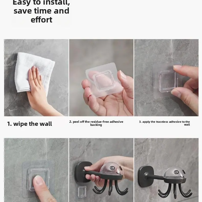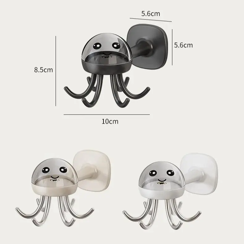 360° rotating cartoon octopus hook, no need to drill holes and won't damage the wall, storage rack, home storage rack, household daily use, kitchen storage hook, shelving rack
