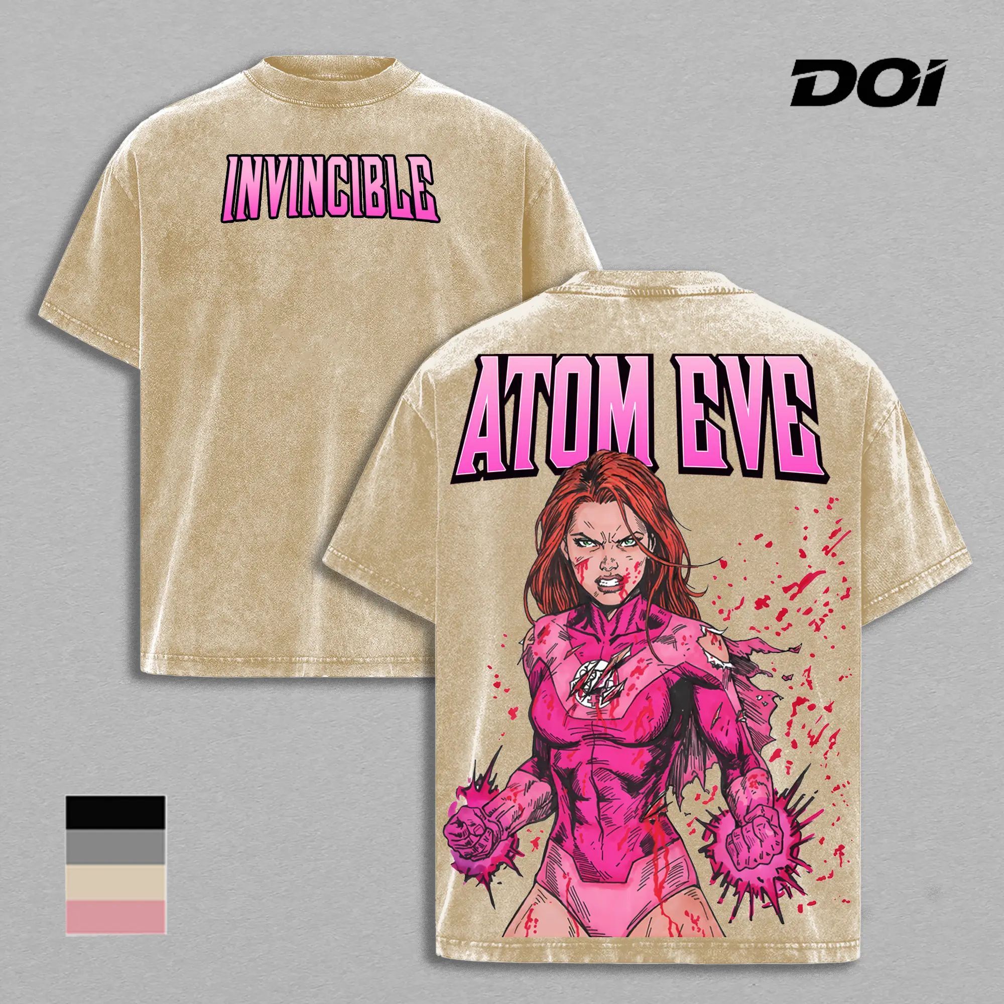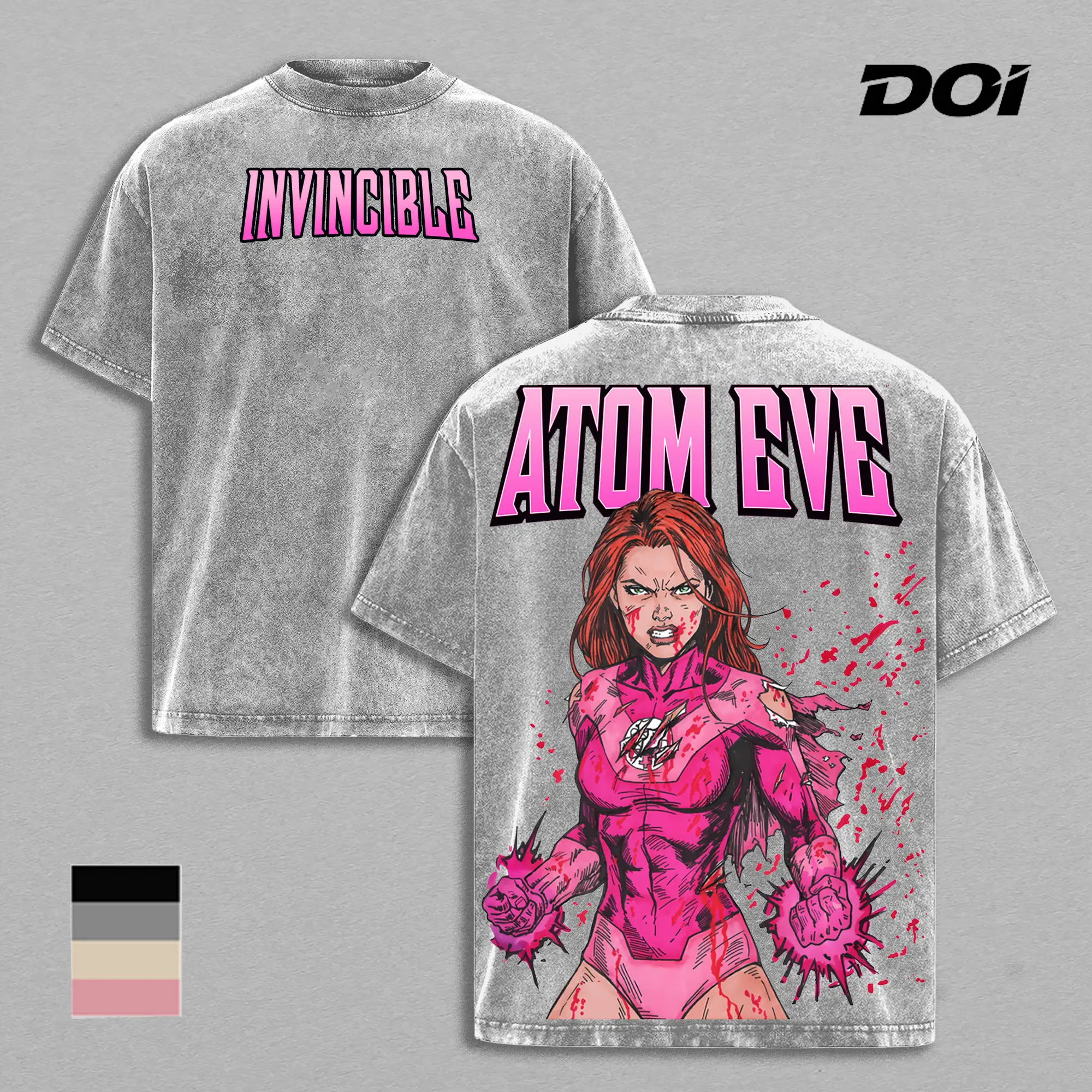 5. Atom Eve – Invincible Pink Power Graphic Tee, Vintage Washed Anime Style Superhero Shirt, Female Hero Energy Blast Design, Unisex Streetwear Heavyweight Cotton Tee, Gift for Invincible Fans