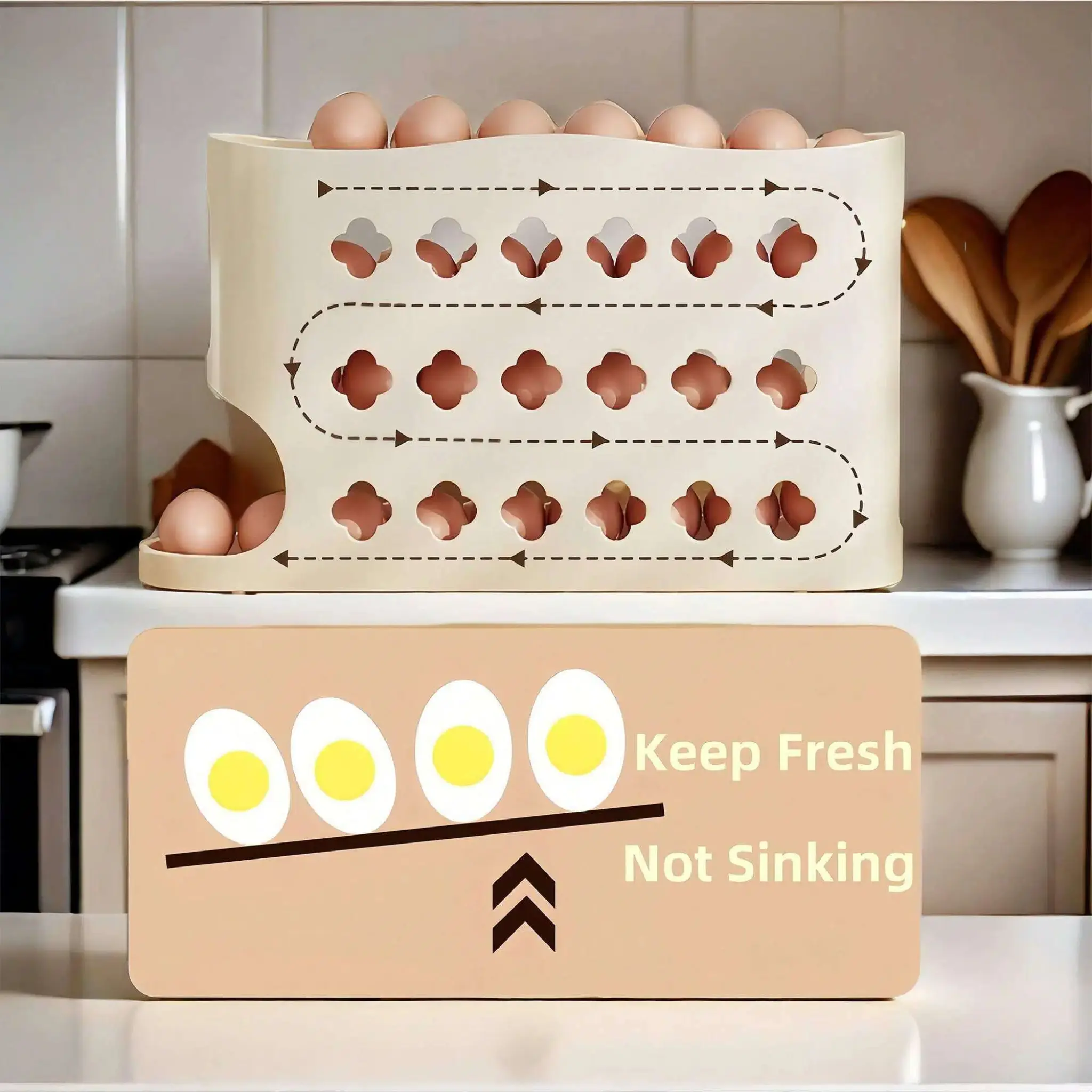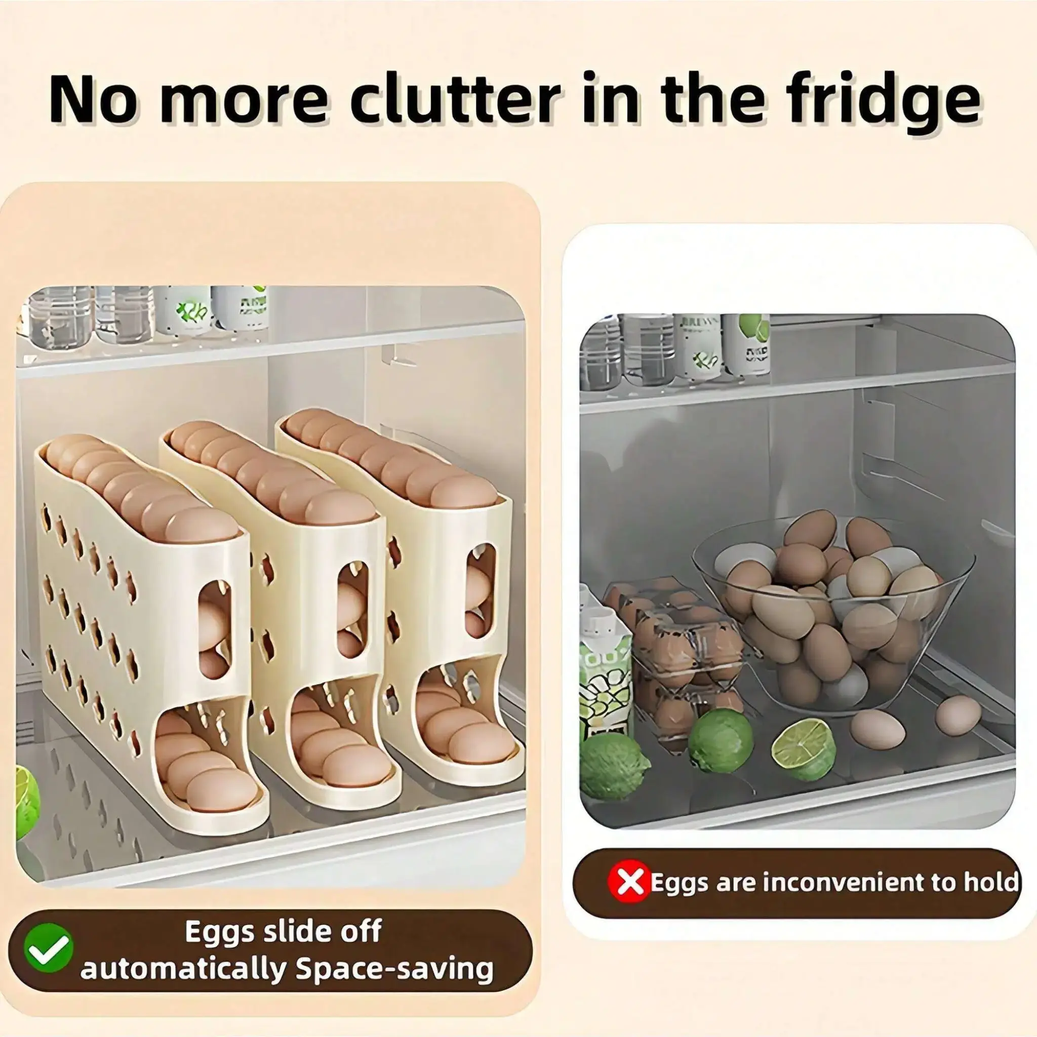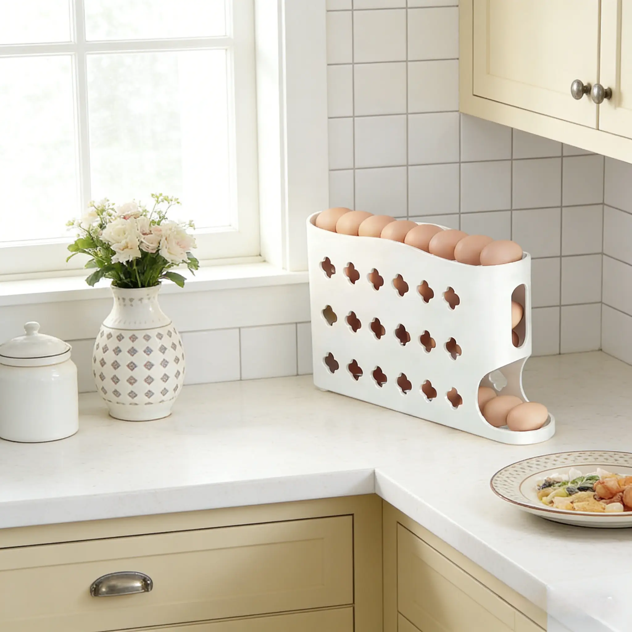 Smooth Auto-Rolling Design: Sloped sides allow eggs to roll gently for easy access, reducing collision and breakage while keeping your eggs well-organized.