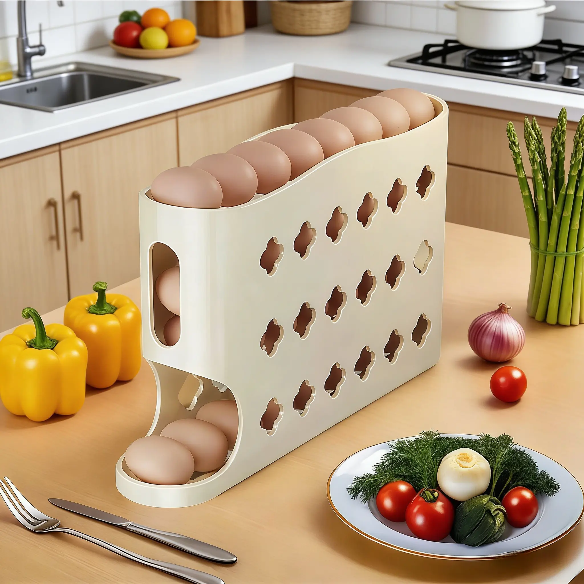 4 Tier Egg Holder for Refrigerator, Thick PP Anti-Break Egg Organizer, Space Saving Egg Holder for Fridge, Kitchen Countertop, Cabinet Storage Organization, for Home Families and Daily Kitchen Use